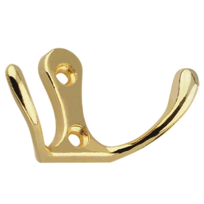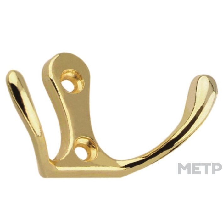 Крючок двойной Trodos золото представляет собой хорошее, рациональное решения для обустройства вешалки в шкафу или коридоре. Изготовлен из стали, надежный и прочный.
