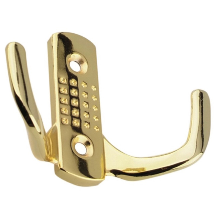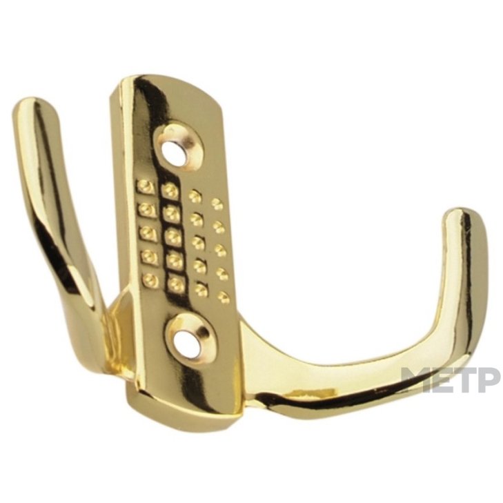 Крючок двойной Trodos золото подойдет для ванной комнаты, спальни (в шкафу, гардеробной), прихожей. Надежность обеспечена стальной основой и креплением на саморезах.