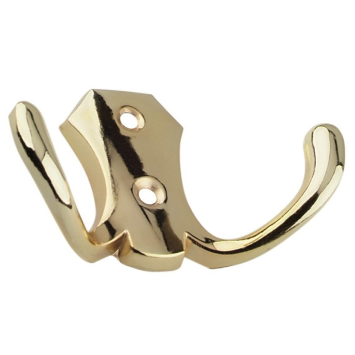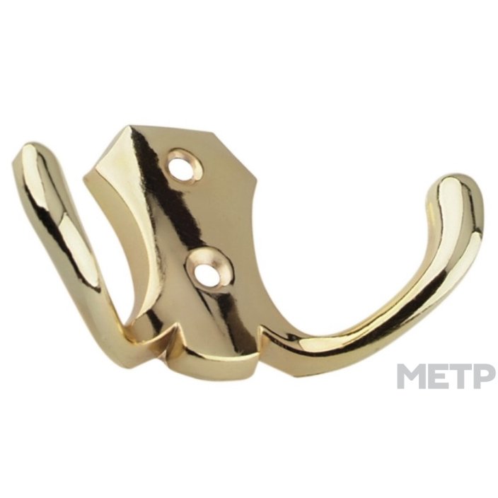 Крючок двойной Trodos золото для прихожей, гардеробной или ванной комнаты достаточно надежен, способен держать существенные нагрузки (сталь + крепление саморезами).
