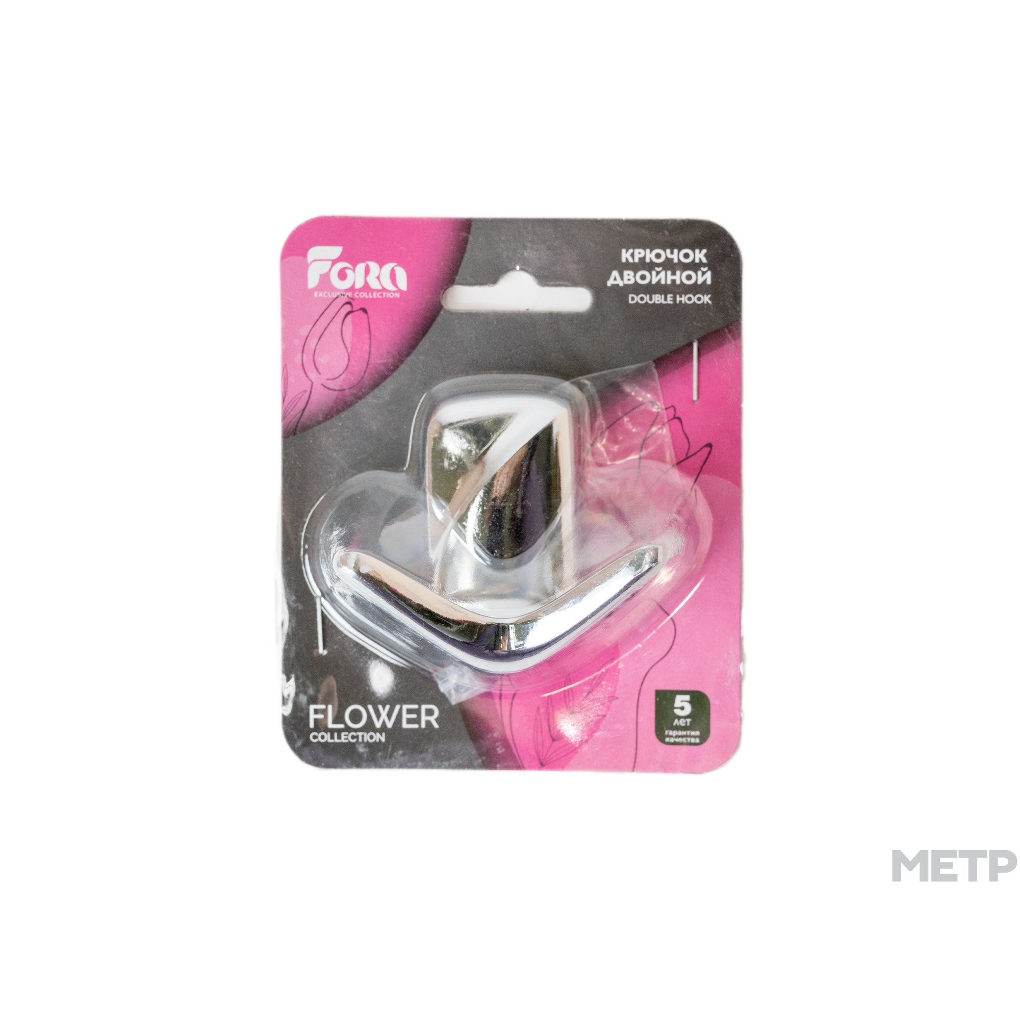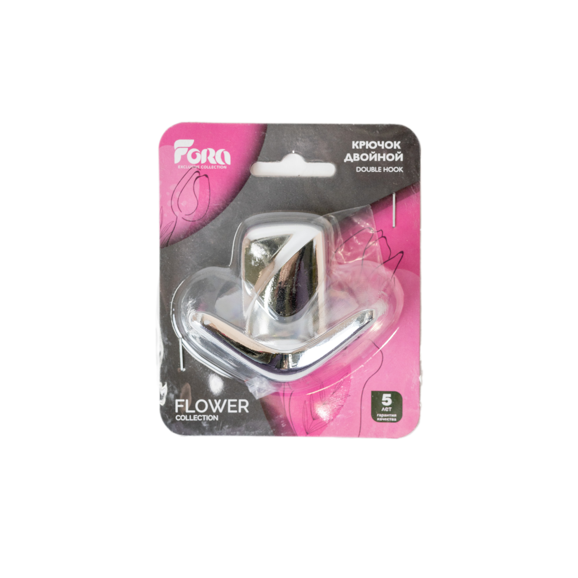Крючок двойной «FLOWER" FORA – универсальный держатель для полотенец как для небольшой ванной с лаконичным ремонтом, так и для больших ванных комнат с изящным дизайном. Они прекрасно впишутся и в другие помещения дома. Изысканные линии придают крючкам для полотенец особый шарм. Аксессуар выглядит невесомо и визуально приятно, при этом обладает высокой надежностью и долговечностью. Использованный материал не подвержен коррозии, а крепления на саморезы крепко монтируются на любую твердую поверхность.