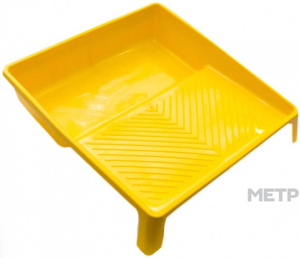 Кювета, вместимостью 200Х200 мм, изготовлена из пластика, удобного для использования в ремонтных или строительных работах. Инвентарь предназначен для размешивания красок, применяемых в малярном деле, и отличается устойчивостью к воздействию технических растворов. Структурированная наклонная площадка служит для отжимания валика.