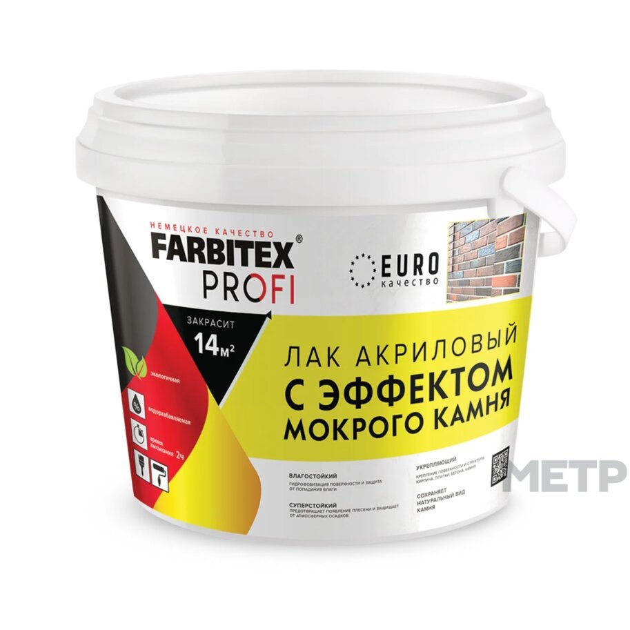 Лак FARBITEX ПРОФИ ABC-Farben с эффектом мокрого камня полуглянцевый бесцветный 0,9 кг, -высококачественный лак на основе акриловой дисперсии для внутренних и наружных работ. Полупрозрачный, водоразбавляемый, экологически чистый, с отличной адгезией к большинству поверхностей. Отличается высокими декоративными и защитными свойствами. Легко наносится и растирается без особых усилий, не оставляя подтеков