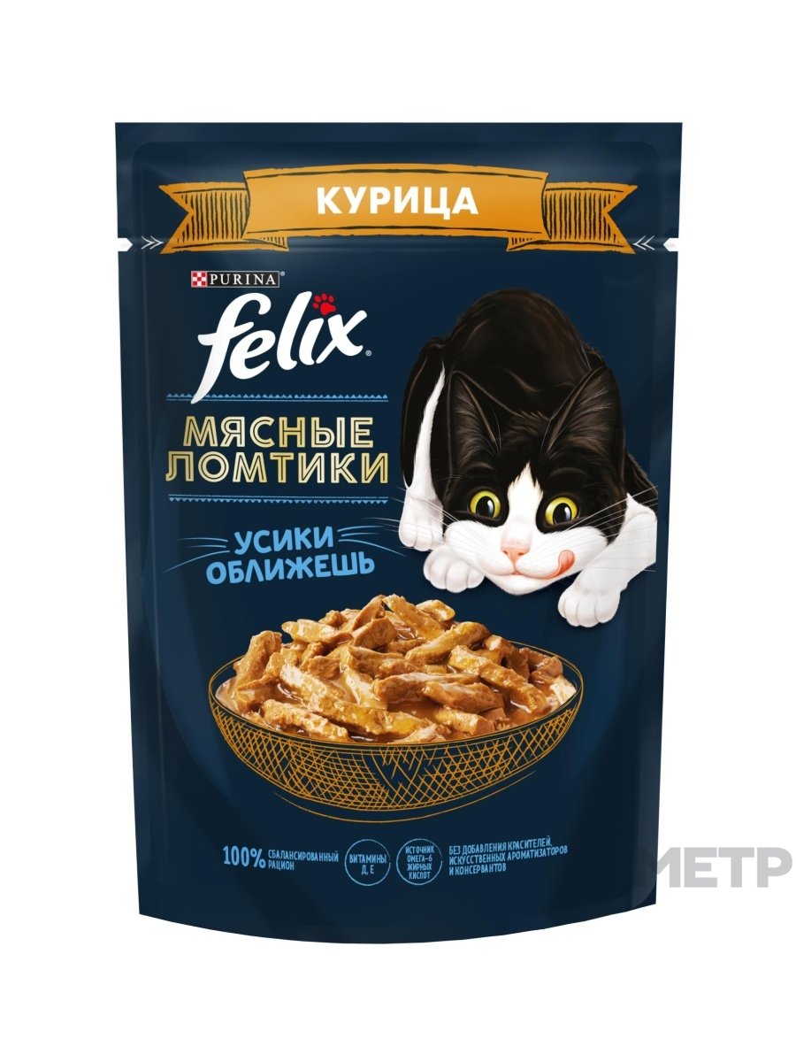 Лакомство для кошек Felix аккуратно нарезанные мясные ломтики курицы в нежнейшем соусе. Ваша кошечка не сможет устоять.