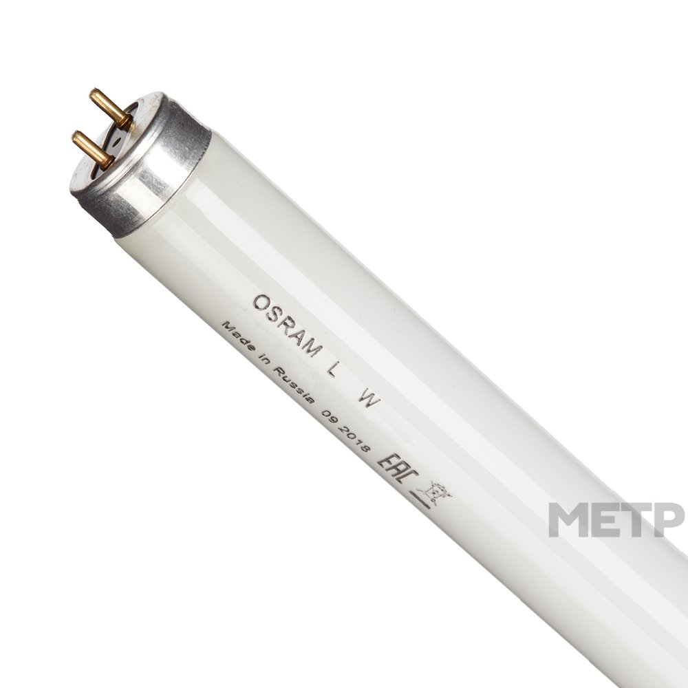 Лампа люминисцентная Osram G13 36 Вт холодный белый свет имеет трубчатую колбу T8 с матовым рассеивателем. Светильник размерами 1200х26 мм подключается в 230-вольтовые сети. Изделие предназначено для температуры от 0 до +40 градусов на протяжении 13 0000 часов. Сделано в России.