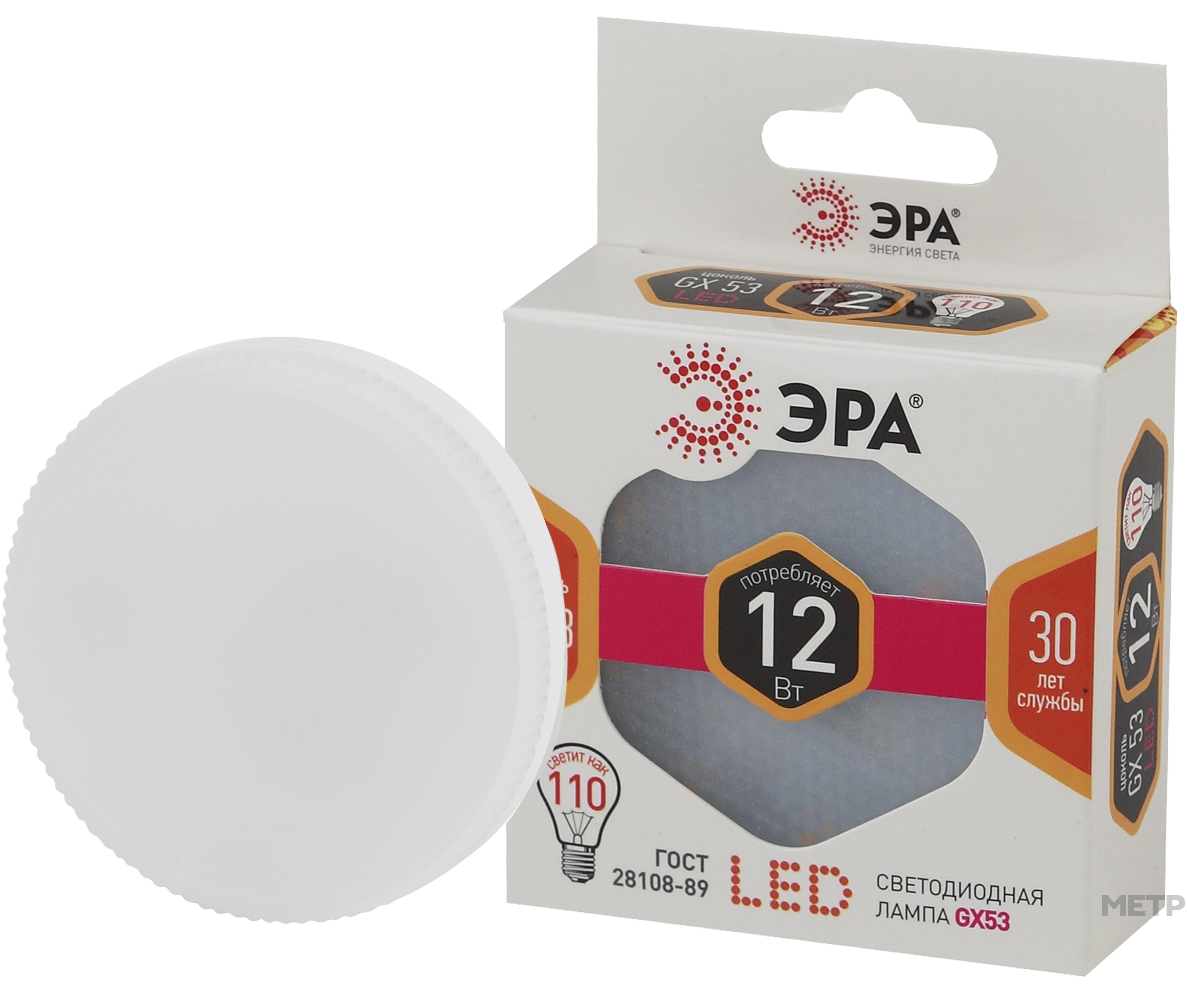 Лампа светодиодная ЭРА GX53 12 Вт 2700 К теплый белый свет эквивалентна лампе накаливания мощностью 110 Вт. Корпус с матовым рассеивателем «таблетка» имеет размеры 28х75 мм. Изделие подключается в сети на 230 В и используется при температуре от -25 до +50 градусов, ресурс работы 35 000 часов. Страна производителя Китай. Гарантийные обязательства 2 года.