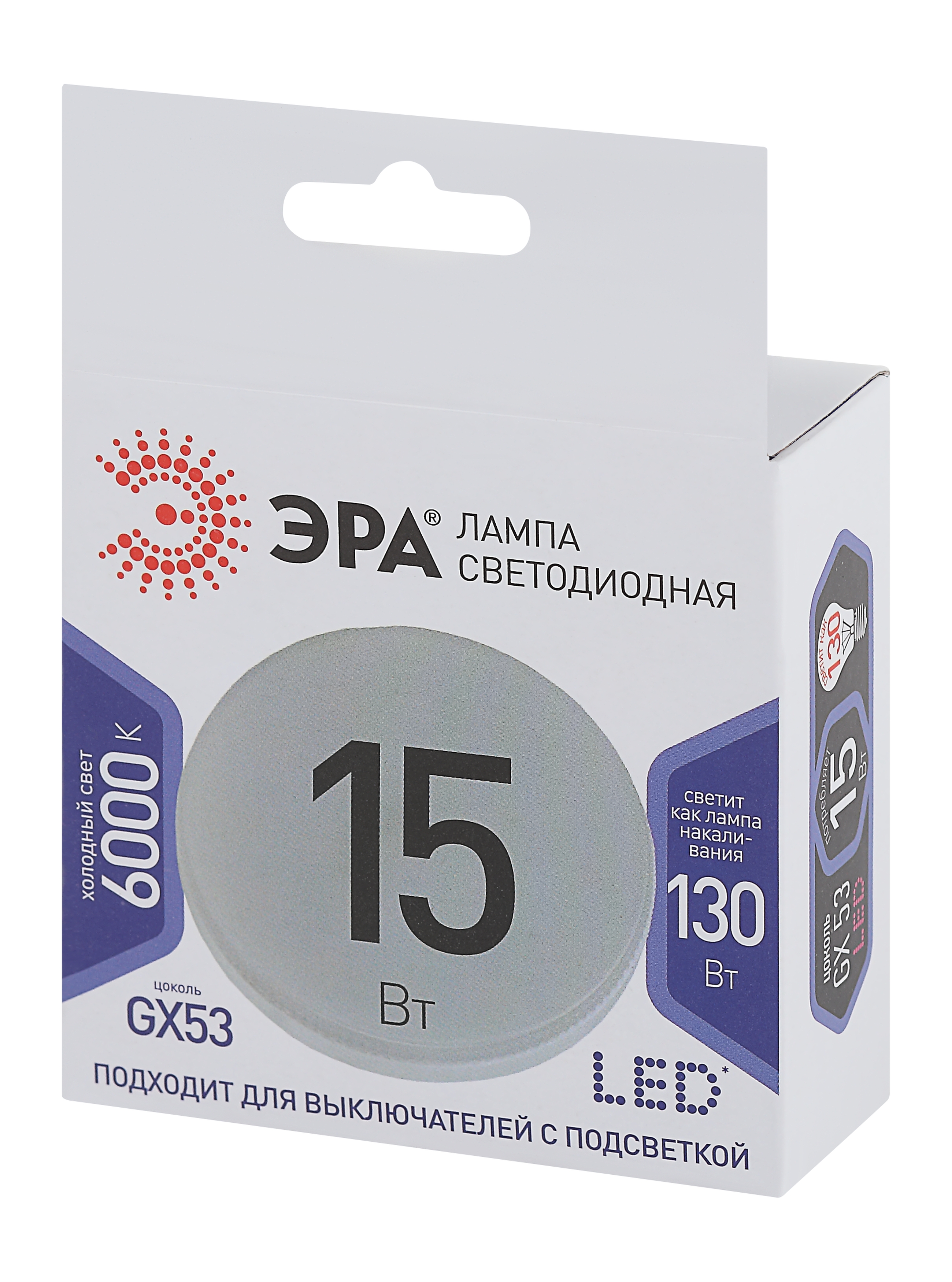 Лампа светодиодная ЭРА GX53 15 Вт 6000 К холодный белый свет имеет форму таблетки с матовым рассеивателем. Обеспечивает высокий уровень освещения аналогично 130-ваттной лампе накаливания. Размеры корпуса 28х75 мм. Рекомендуется использовать при температуре от -25 до +50 градусов. Сделано в Китае. Ресурс работы 35 000 часов, гарантия 2 года.