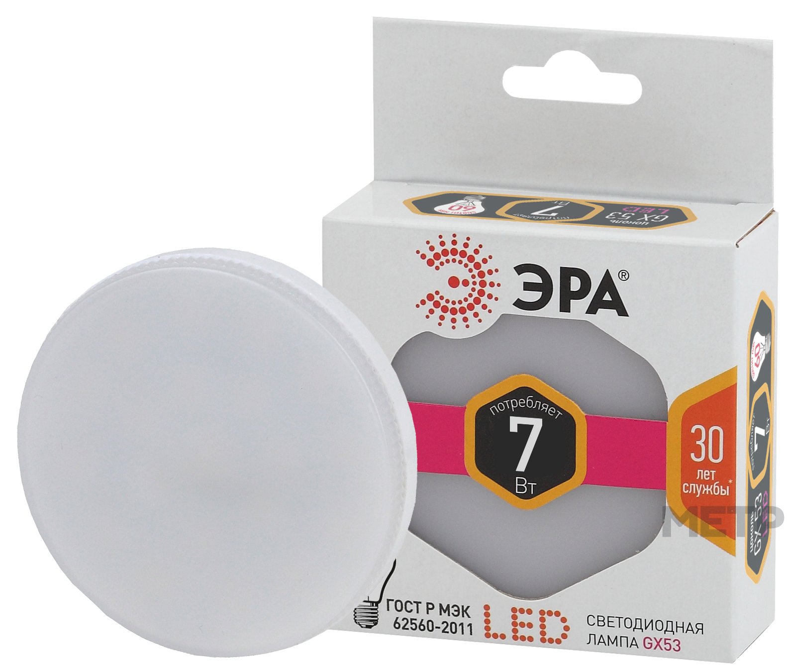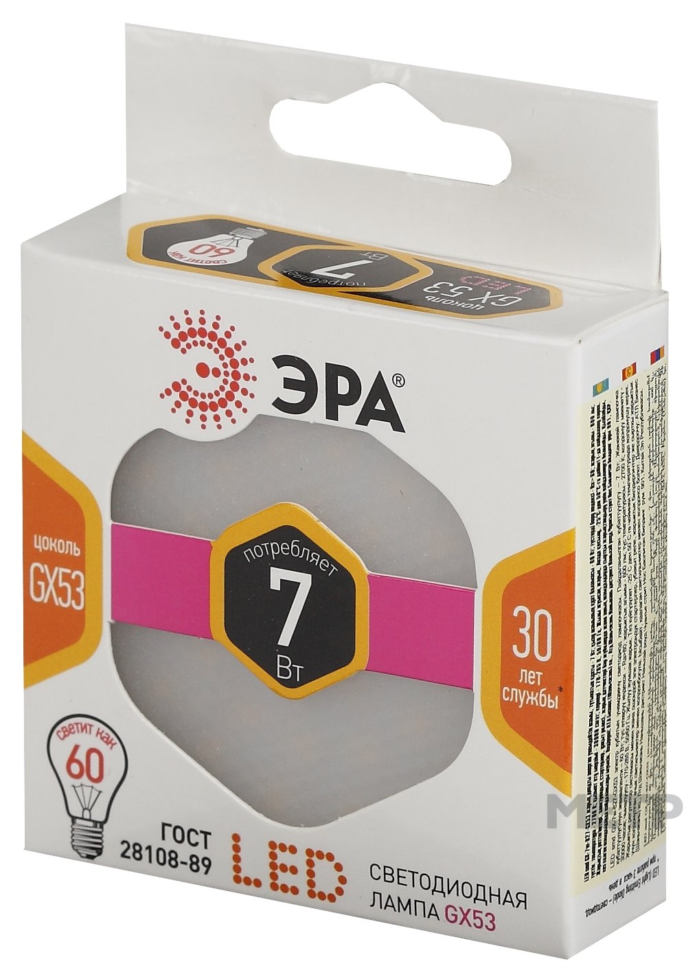 Лампа светодиодная ЭРА GX53 7 Вт 2700 К теплый белый свет по яркости способна заменить 60-ваттную лампу накаливания. Товар опытного производителя имеет срок службы 35 000 часов. Лампа подключается в сети 230 В и работает в температурном диапазоне от -25 до +50 градусов. Размеры корпуса 28х74 мм, выполнен в формате «таблетка» с матовым рассеивателем. Производство – Китай. Гарантия 2 года.