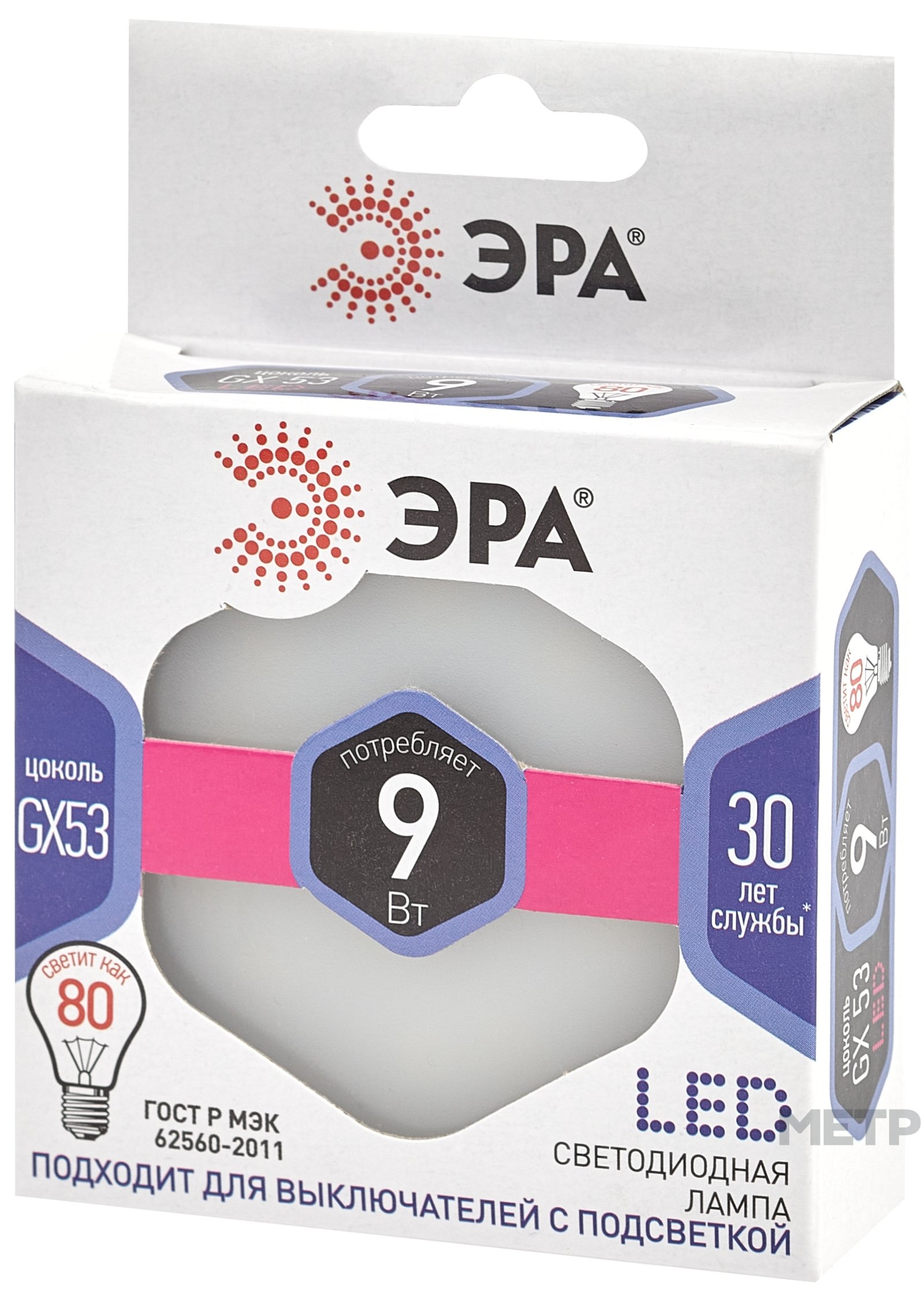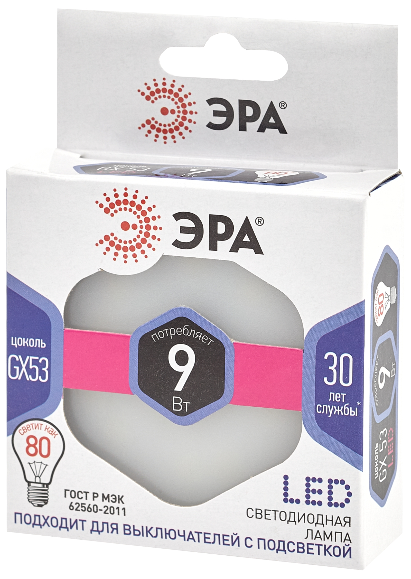 Лампа светодиодная ЭРА GX53 9 Вт 6000 К холодный белый свет может устанавливаться вместо 80-ваттной лампочки накаливания и осуществлять освещение на протяжении 35 000 часов. Корпус имеет форму матовой таблетки размерами 27х74 мм. Напряжение в цепи 230 В, допустимая температура от -25 до +50 градусов. Сделано в Китае. Гарантия 2 года.