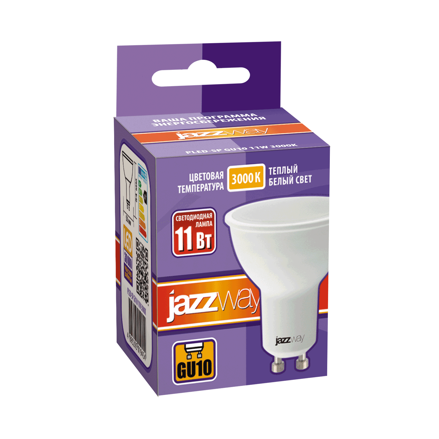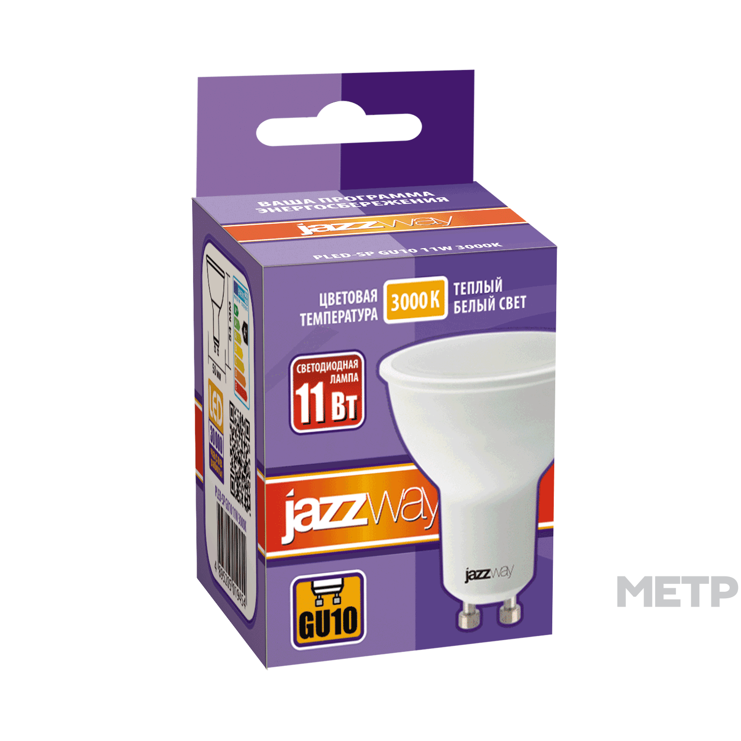 Лампа светодиодная Jazzway GU10 11 Вт 3000 К теплый белый свет обеспечивает максимальную мощность и максимальный световой поток по доступной цене. Конструктивные особенности ламп PLED POWER (внутренний корпус – алюминиевый, внешний – пластиковый) обеспечивают эффективный теплоотвод для этой серии мощных ламп с компактными размерами. Предназначена для освещения жилых, офисных и коммерческих помещений. Экономия электроэнергии более 80%. Высокая надёжность. Прочная конструкция. Отсутствие УФ и ИК-излучения. Лампы экологически безопасны – не содержат тяжелых металлов и ртути. Не диммируются.