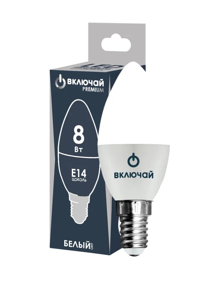 Лампа светодиодная Включай PREMIUM Е14 8 Вт 4000 К нейтральный белый свет – это экономичный аналог лампы накаливания на 60 Вт. Изделие подойдёт для использования при температуре от -20 до +40 градусов под напряжением 230 В. Лампочка размерами 110х37 мм имеет матовый рассеиватель в форме свечи. Срок службы 30 000 часов, гарантия 2 года. Произведено в Китае.