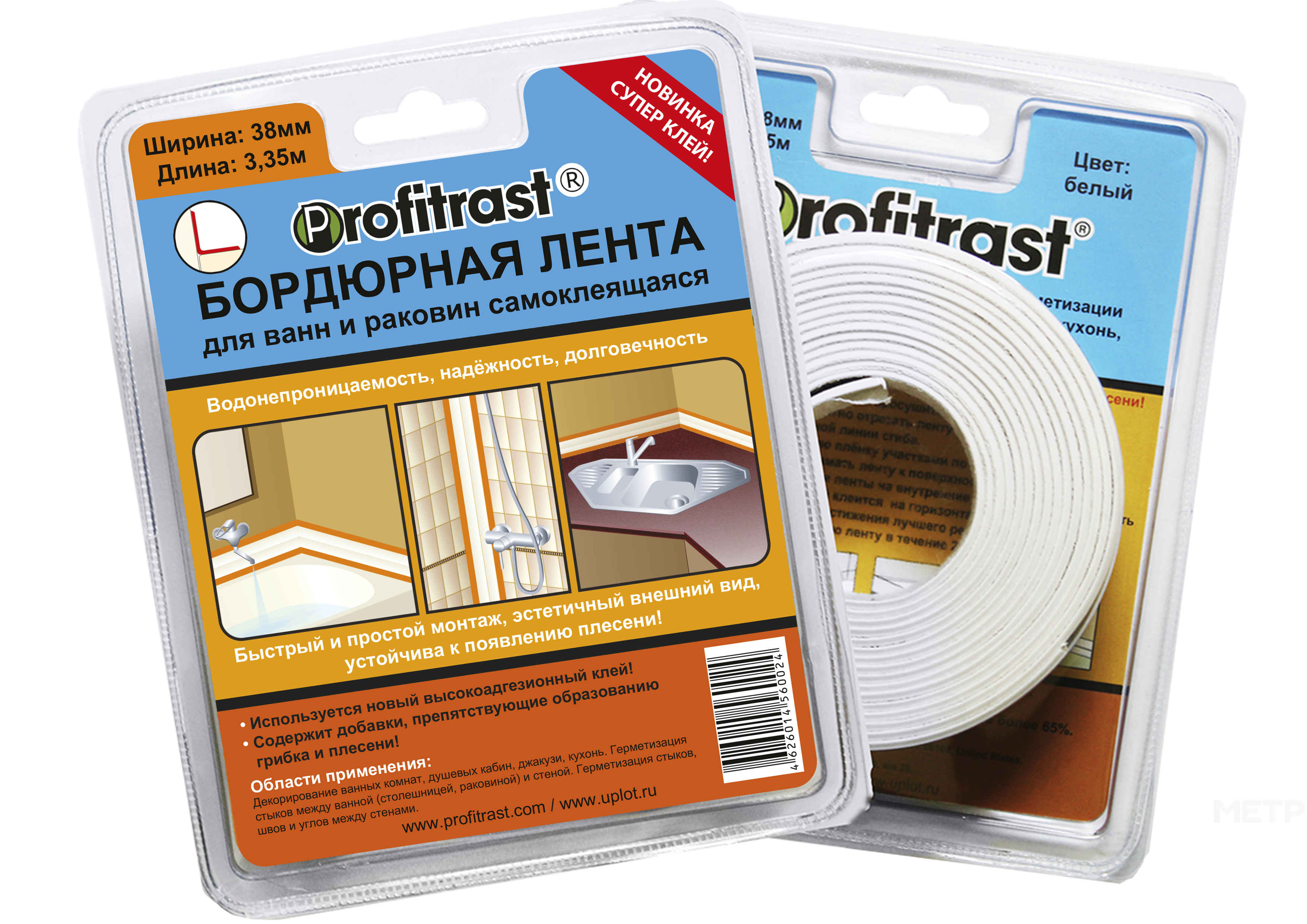 Бордюрная лента предназначена для герметизации стыков между ванной (раковиной, столешницей) и стеной, углов и швов между стенами.