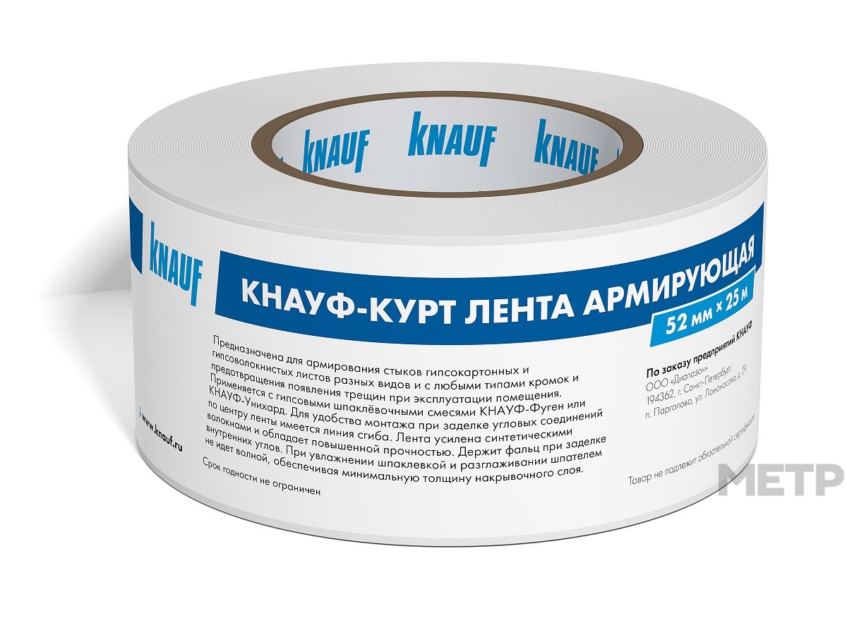 Лента армирующая Курт — это армирующая лента, изготовленная из белой специальной бумаги с армирующими синтетическими волокнами. Предназначена для армирования стыков гипсокартонных и гипсоволокнистых листов разных видов и с любыми типами кромок и предотвращения появления трещин при отделочных работах.