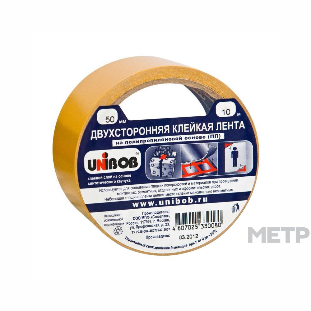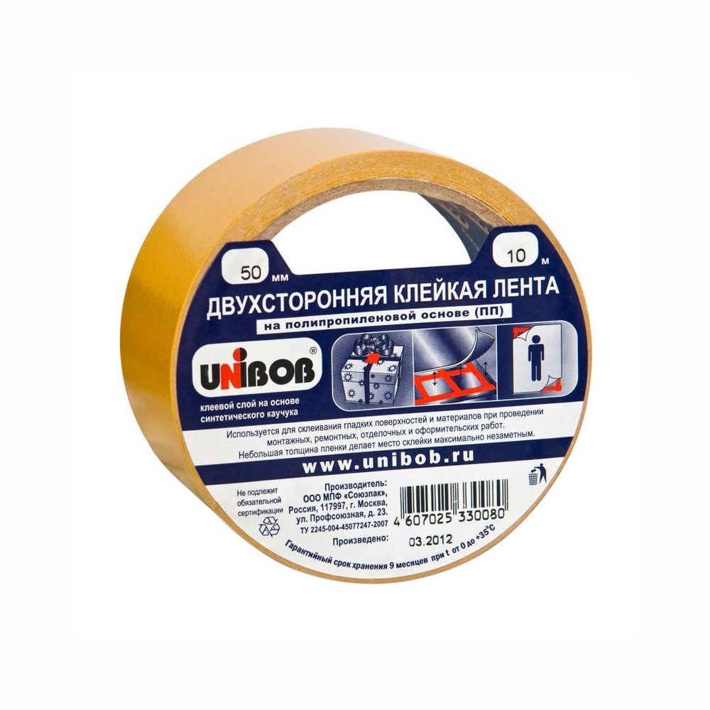 Лента двусторонняя на полипропиленовой основе (50 мм, 10 м), цвет белый, материал – полипропилен. Такие ленты устойчивы к повышенной влажности и сырости, способны обеспечивать прочные соединения различных прозрачных поверхностей. Оптимальное решение для ремонта в квартире, загородном коттедже, на даче.