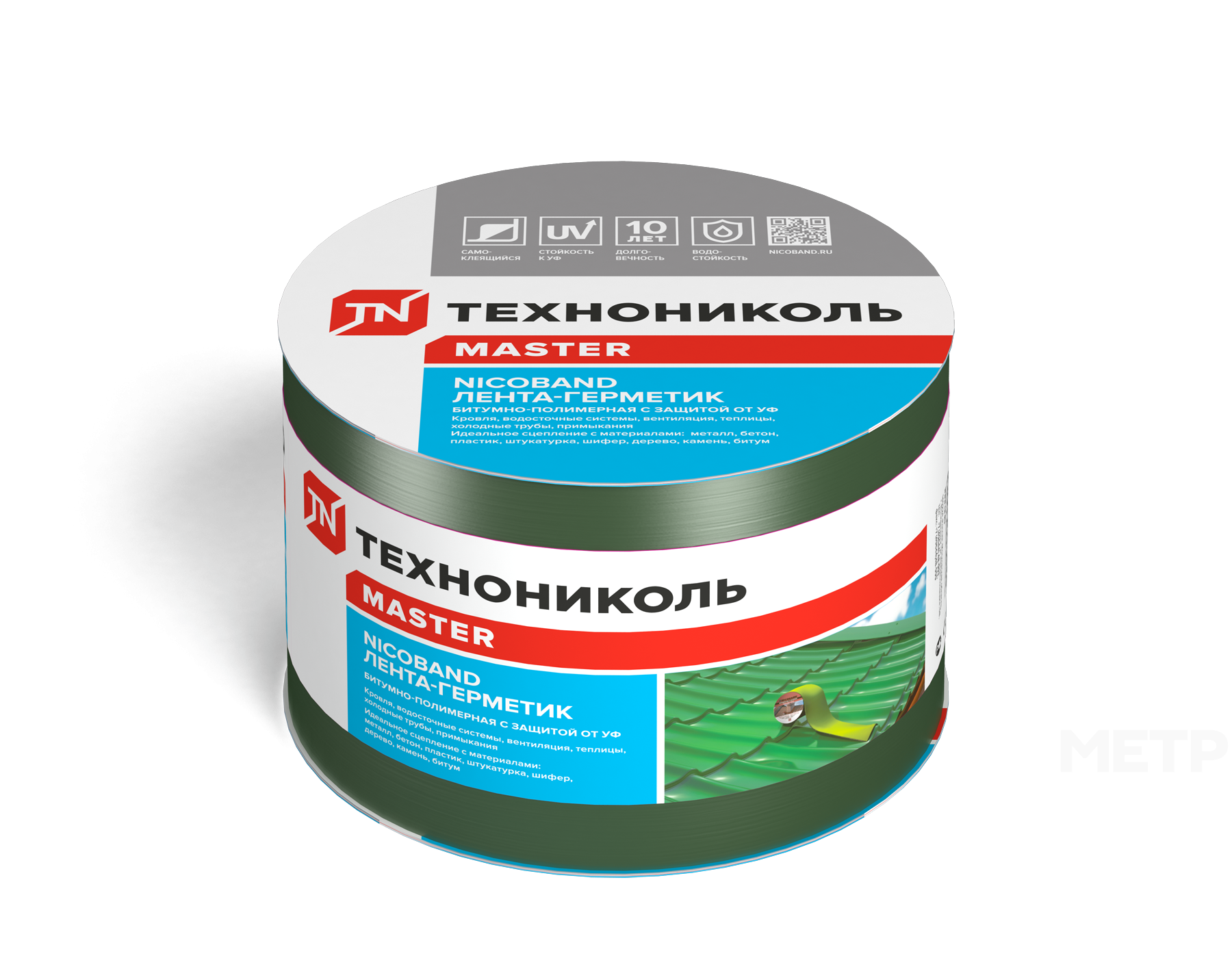Лента герметизирующая NICOBAND 0,100 м х 10 метров Зеленый - самоклеящийся битумно-полимерный гидроизоляционный кровельный материал, предназначенный для герметизации различных поверхностей, трещин и стыков. Применяется также для гидроизоляции примыканий, ремонта кровельных покрытий крыш и водосточных систем. Специальная УФ защита ленты-герметика увеличивает срок ее эксплуатации вне помещений, а ассортимент цветовых решений подойдет под любую кровлю.