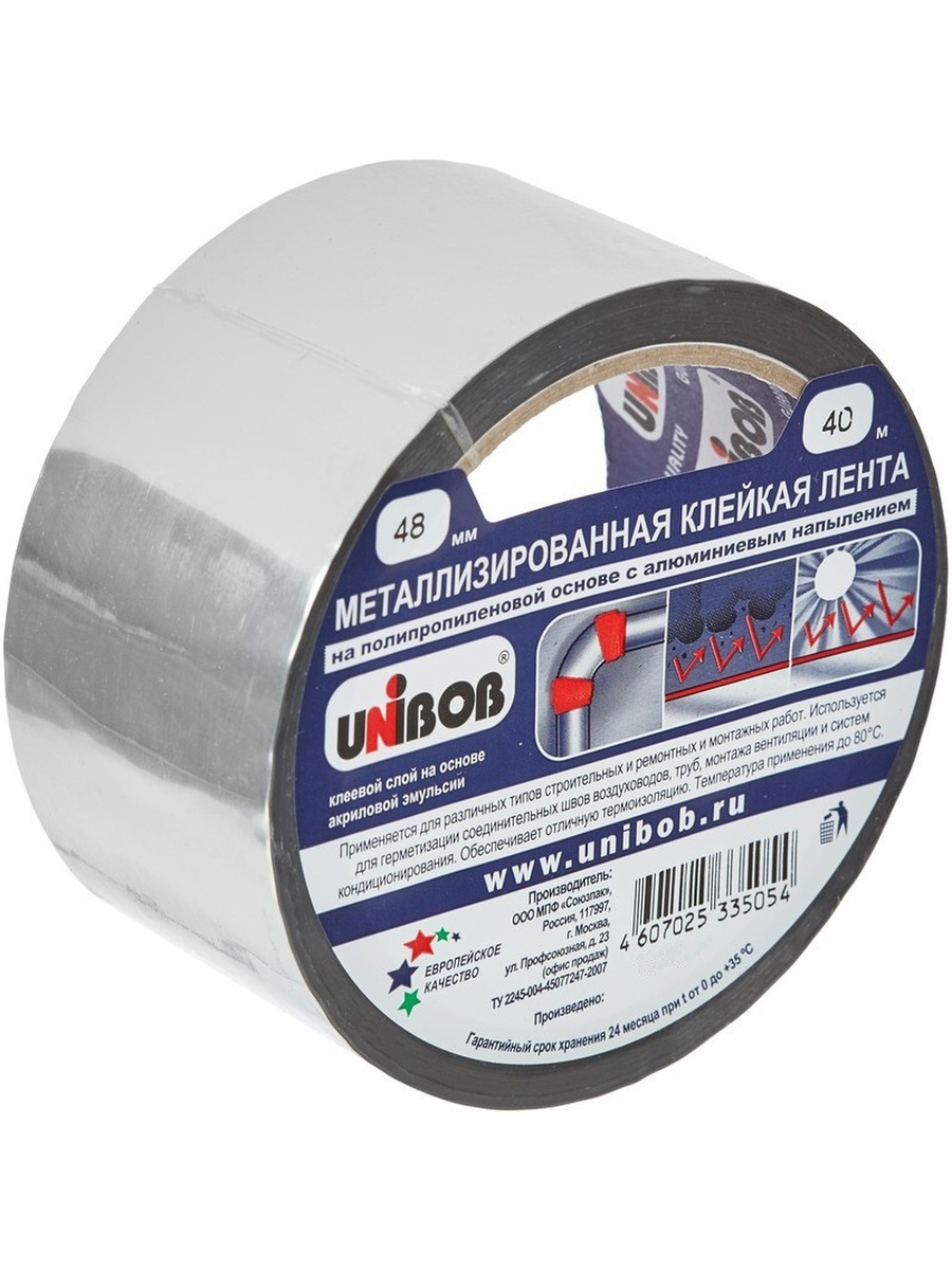 Лента металлизированная UNIBOB 48 мм (40 м), цвет серебро. Данный тип ленты полностью соответствует всем современным требованиям, надежен и технологичен. Модель разработана на основе передовых технологий и создана на современном оборудовании. Универсальна, с отличной адгезией, широко применяется в быту.