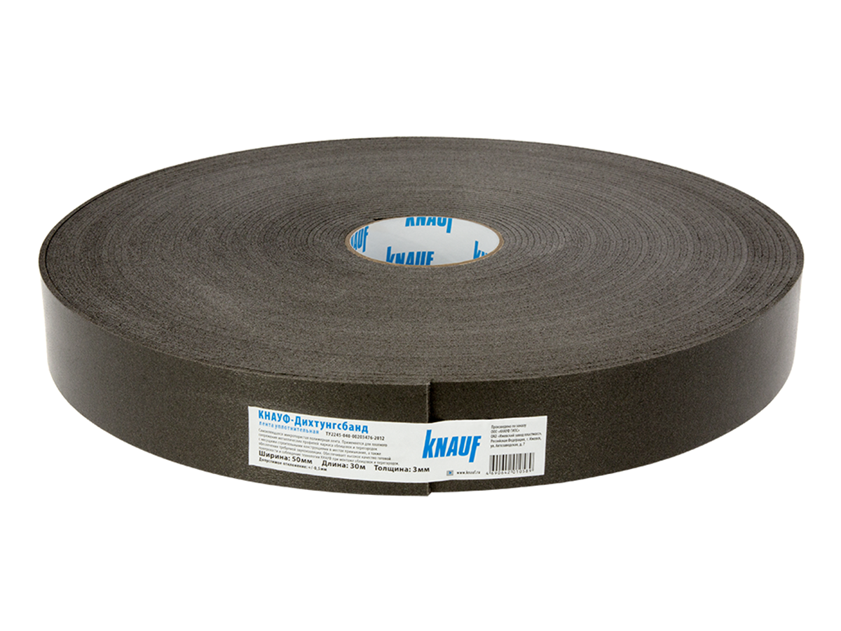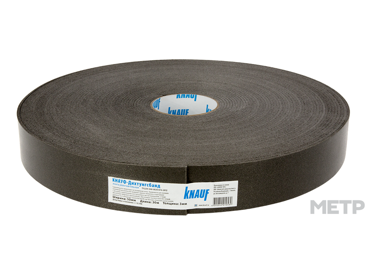 Самоклеящаяся микропористая полимерная лента. Предназначена для плотного сопряжения металлических профилей каркаса облицовок и перегородок с несущими строительными конструкциями в местах примыкания, а также обеспечения требуемой звукоизоляции.