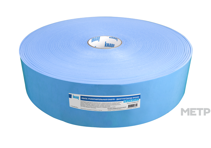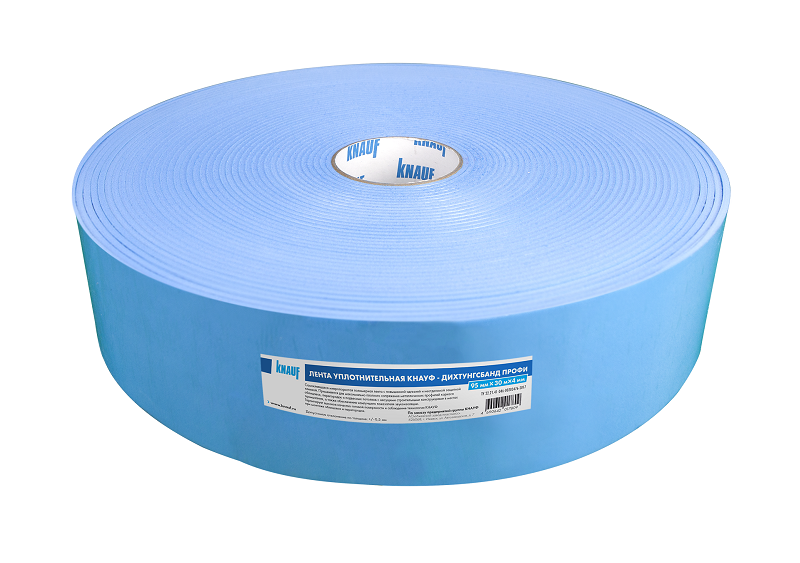 Самоклеящаяся микропористая полимерная лента с повышенной адгезией и неотделимой защитной пленкой. Лента уплотнительная КНАУФ-Дихтунгсбанд Профи применяется в каркасных звукоизоляционных конструкциях в качестве демпфирующего слоя между профилями и обшивкой из листовых материалов, а также для максимально плотного сопряжения металлических профилей со строительными конструкциями. Для достижения высоких показателей звукоизоляции лента клеится на полки стоечных профилей (ПС) и стенки потолочных профилей (ПП).