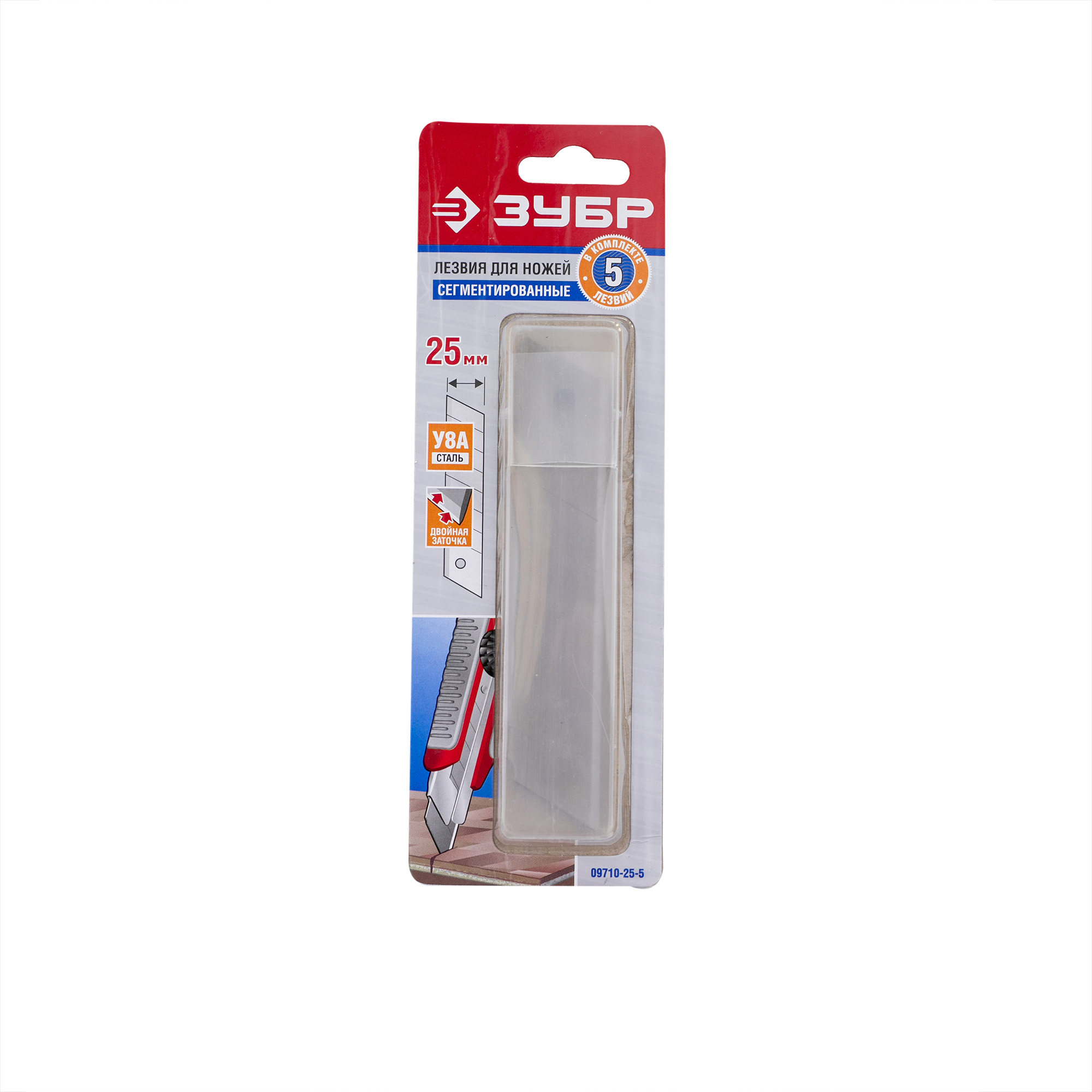 Лезвие Зубр 25 мм 5 шт. – надёжные высококачественные лезвия с сегментированной формой. Благодаря двугранной заточке, они на долгое время остаются острыми и хорошо справляются со своими задачами. Отлично режут бумагу, обои, картон, плёнку, мягкие напольные покрытия, не оставляя рваных краёв. Ширина лезвия 25 мм.