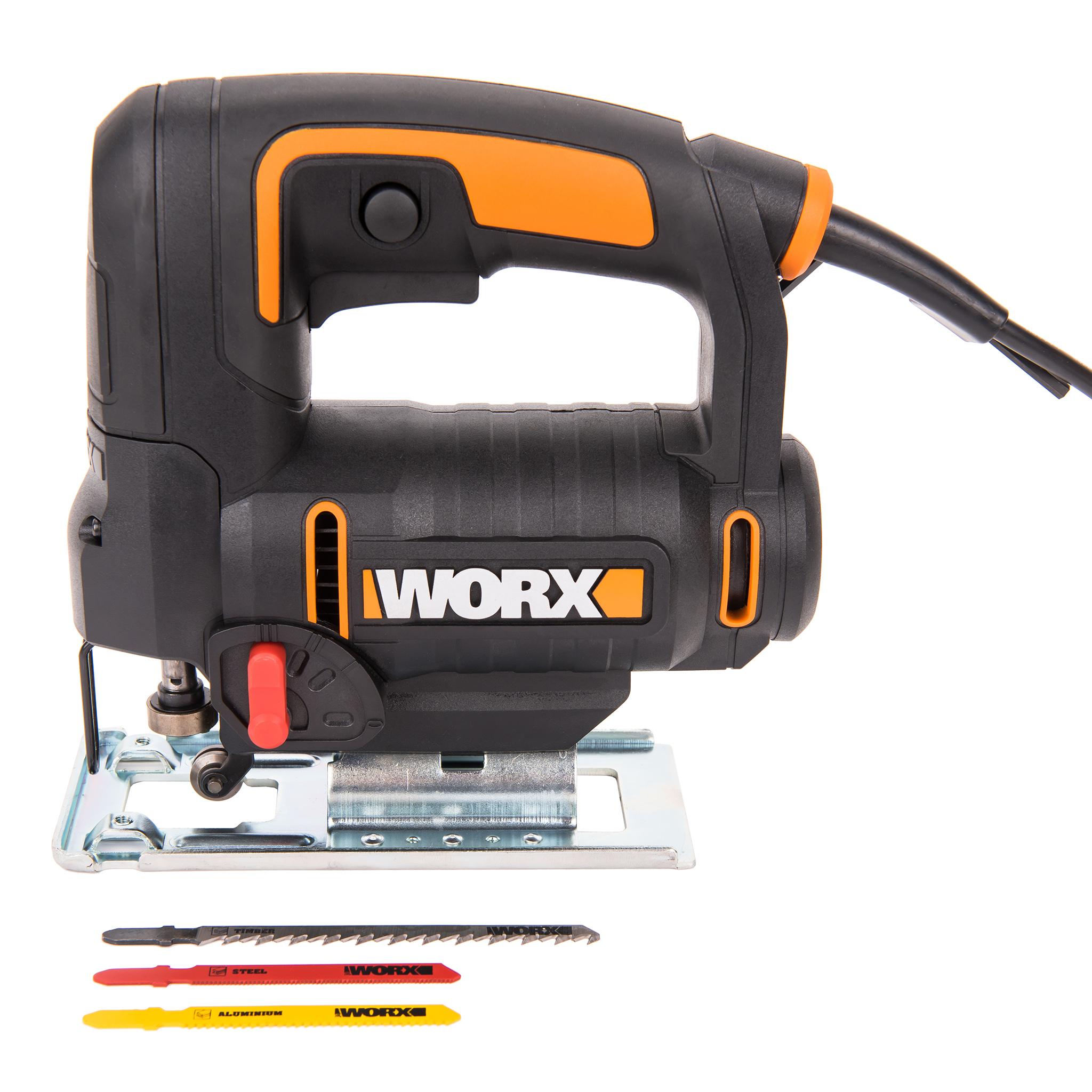 Лобзик WX477.1 0,55кВт 3100х/м Worx предназначен для распила древесины, металла и алюминия. Оснащен щеточным двигателем 550Вт и встроенным воздуходувом. Длина хода — 20мм, частота движения — 3100 ход/мин, регулировка угла реза 0-45°. Безынструментальная смена пилки обеспечивает быстроту и безопасность проводимых работ. 4 ступени маятникового хода для повышения эффективности пиления. Регулируемая база для резки под углом, способность скоса пиления — от 0 до 45 градусов. Для быстрой очистки места среза в лобзик установлен специальный компактный воздуходув. Очень удобно, что емкость для лезвий — прямо на инструменте, это позволяет быстро сменять пилки.