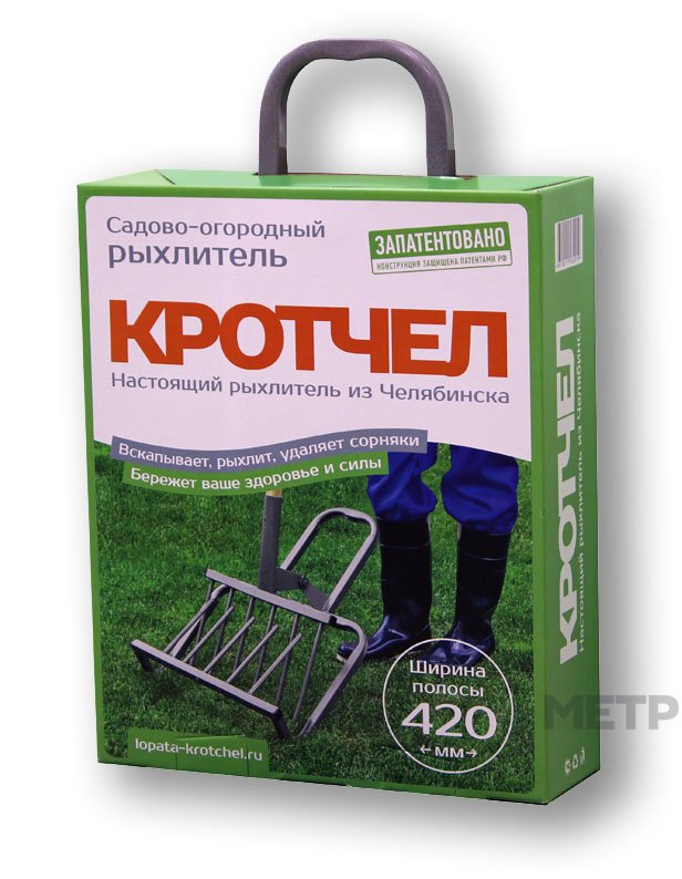 Лопата Кротчел М с простой и надежной конструкцией увеличит производительность труда и качество обработки земли на участке. Рабочие вилы обеспечивают рыхление на глубину 25 см без существенной нагрузки на позвоночник, спина при работе остается прямой, а нагрузка распределяется равномерно на спину, пресс, плечевой пояс. В отличие от классической штыковой лопаты Кротчел-М не разрубает корни и стебли сорняков, а извлекает их из земли, препятствуя размножению сорных растений. При необходимости раму-рыхлитель легко снять и использовать инструмент как картофелекопалку. Обратите внимание, инструмент не предназначен для обработки каменистых грунтов и не комплектуется черенком.