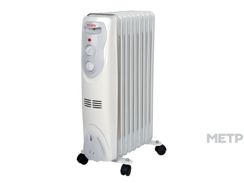 Масляный радиатор Ресанта ОМ-9Н мощностью 2000 Вт обеспечит длительный обогрев помещения площадью до 25 кв. м.