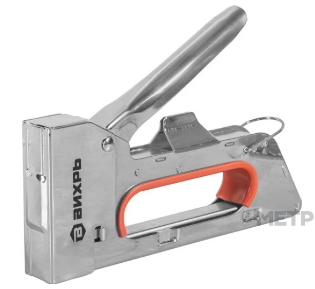 Мебельный степлер Вихрь применяется для сборки мягкой мебели, шкафов и других отделочных работах. Используются скобы 53 типа, длина от 4 до 8 мм. Имеется плавная регулировка силы удара.