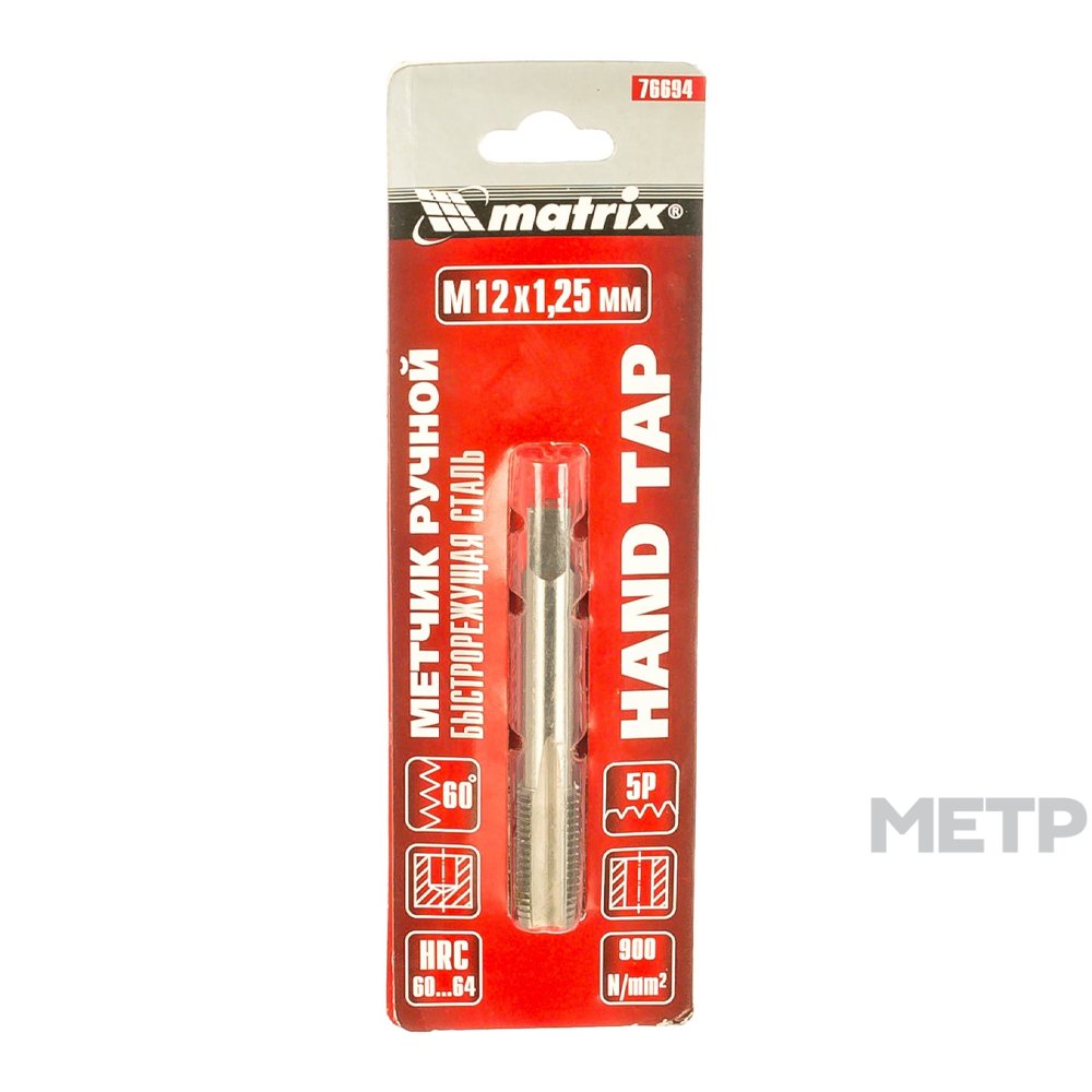 Метчик М12 1,25 мм Matrix. Данное изделие пригодится при организации систем отопления и водопровода в частных домах. Инструмент необходим для самостоятельного нарезания резьбы, прост в обращении и эффективен. Конструкция включает винт с канавками (стружечными), которые образуют режущие кромки.