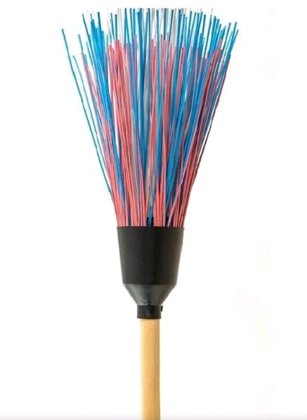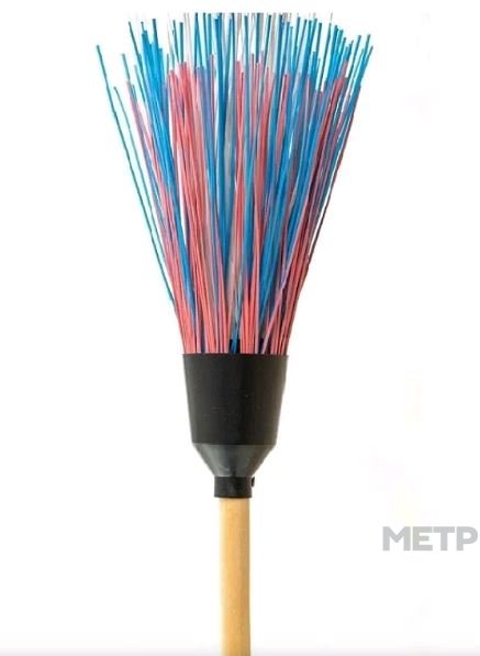 Метла полипропиленовая Баба-Яга усиленная предназначена для уборки на улице. Метла собрана на пяти кольцах, которые закрыты декоративным колпаком. Она очень крепкая и износостойкая.