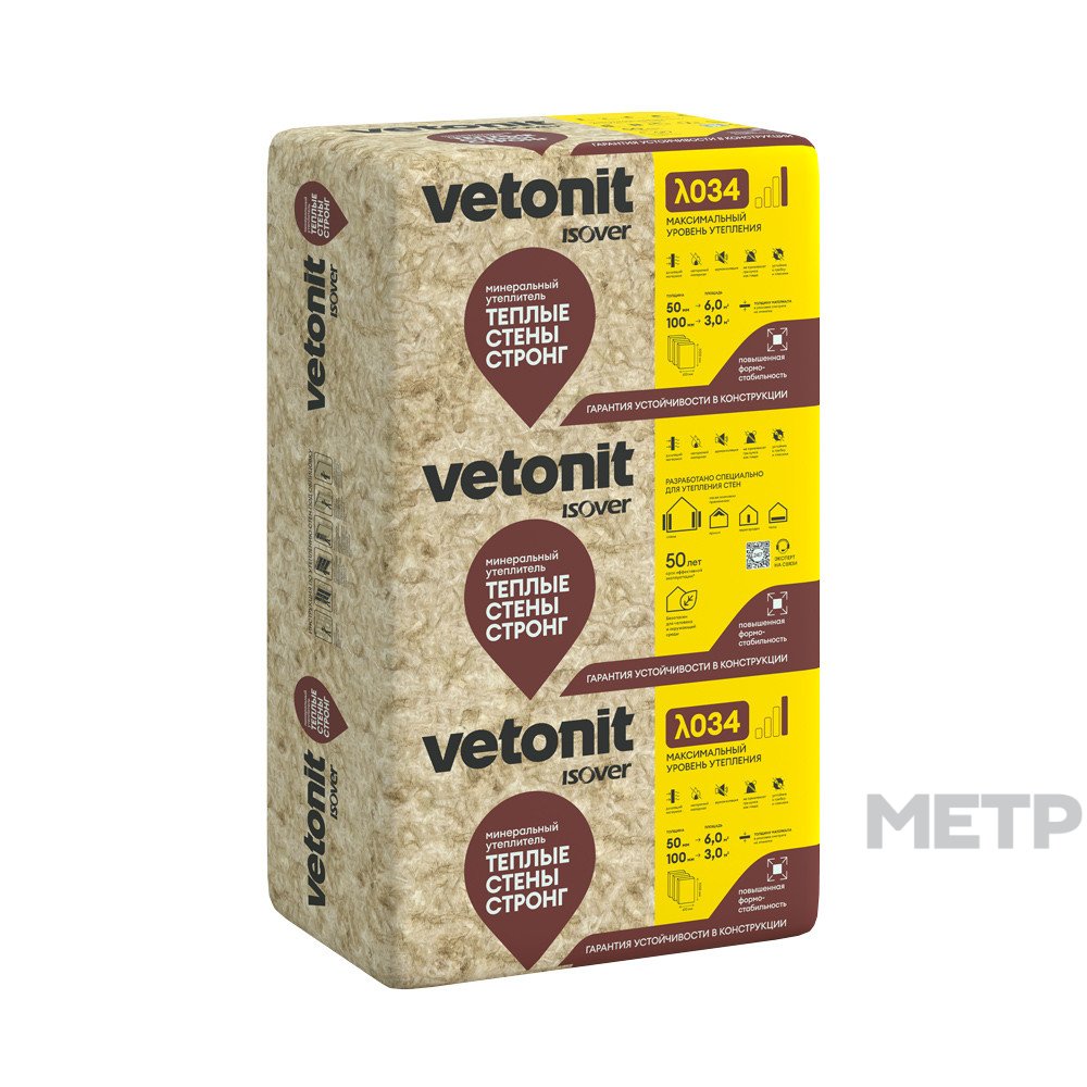 Минераловатная теплоизоляция Теплые Стены Стронг 1000х610х100 мм - утеплитель в плитах с улучшенной теплопроводностью - λ 0.034 и повышенной упругостью. Разработан специально для утепления внешних и внутренних стен, также подходит для крыш. Гарантия устойчивости конструкции без дополнительных крепежей. Является также шумоизоляцией.
