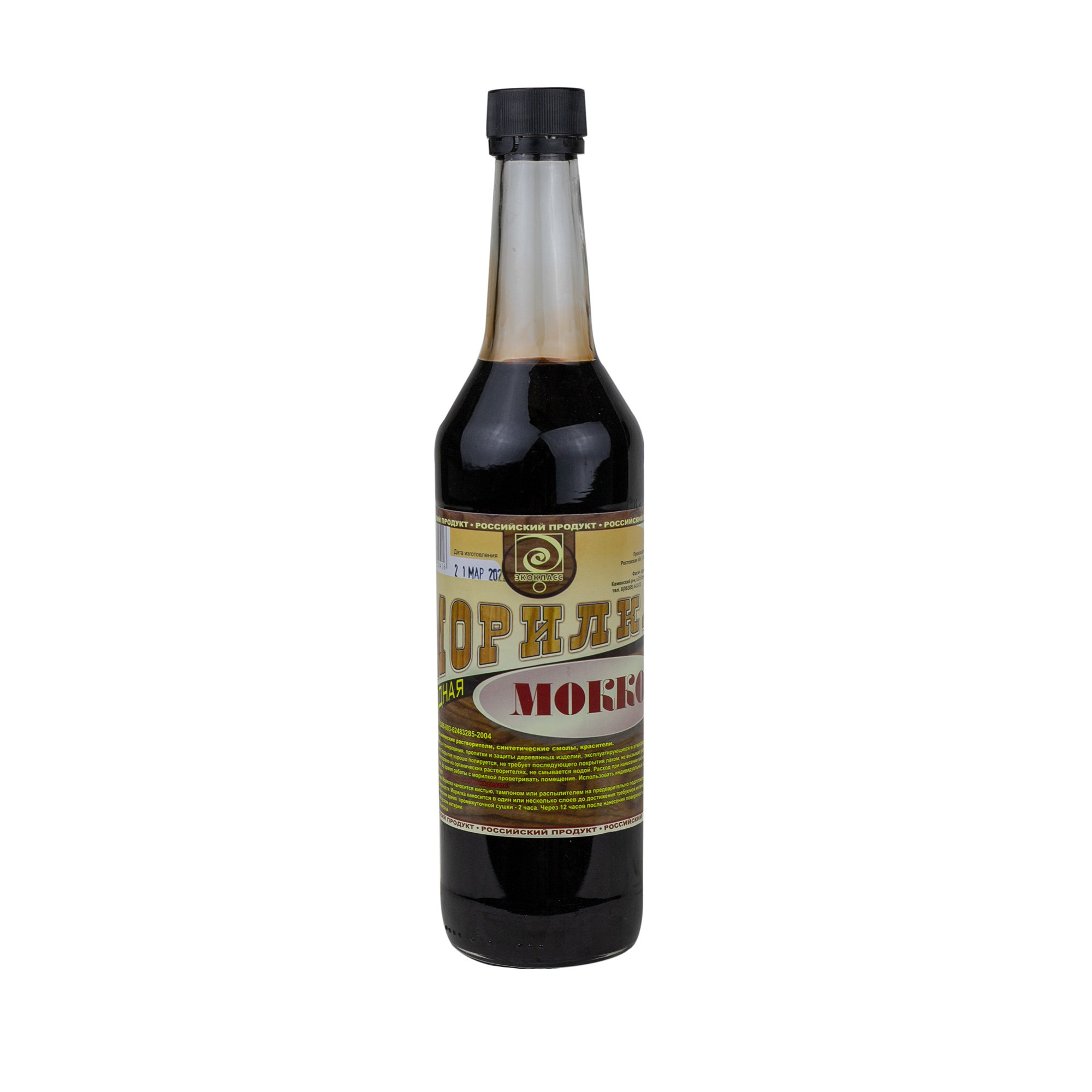 Морилка Эко класс мокко 0,5 л предназначена для тонирования,пропитки и защиты деревянных изделий, эксплуатирующихся в атмосферных условиях и внутри помещений. Покрытие хорошо полируется, не требует последующего покрытия лаком,не вызывает разбухания древесины. Расход – 120-150 мл. на 1 кв. м. в один слой.