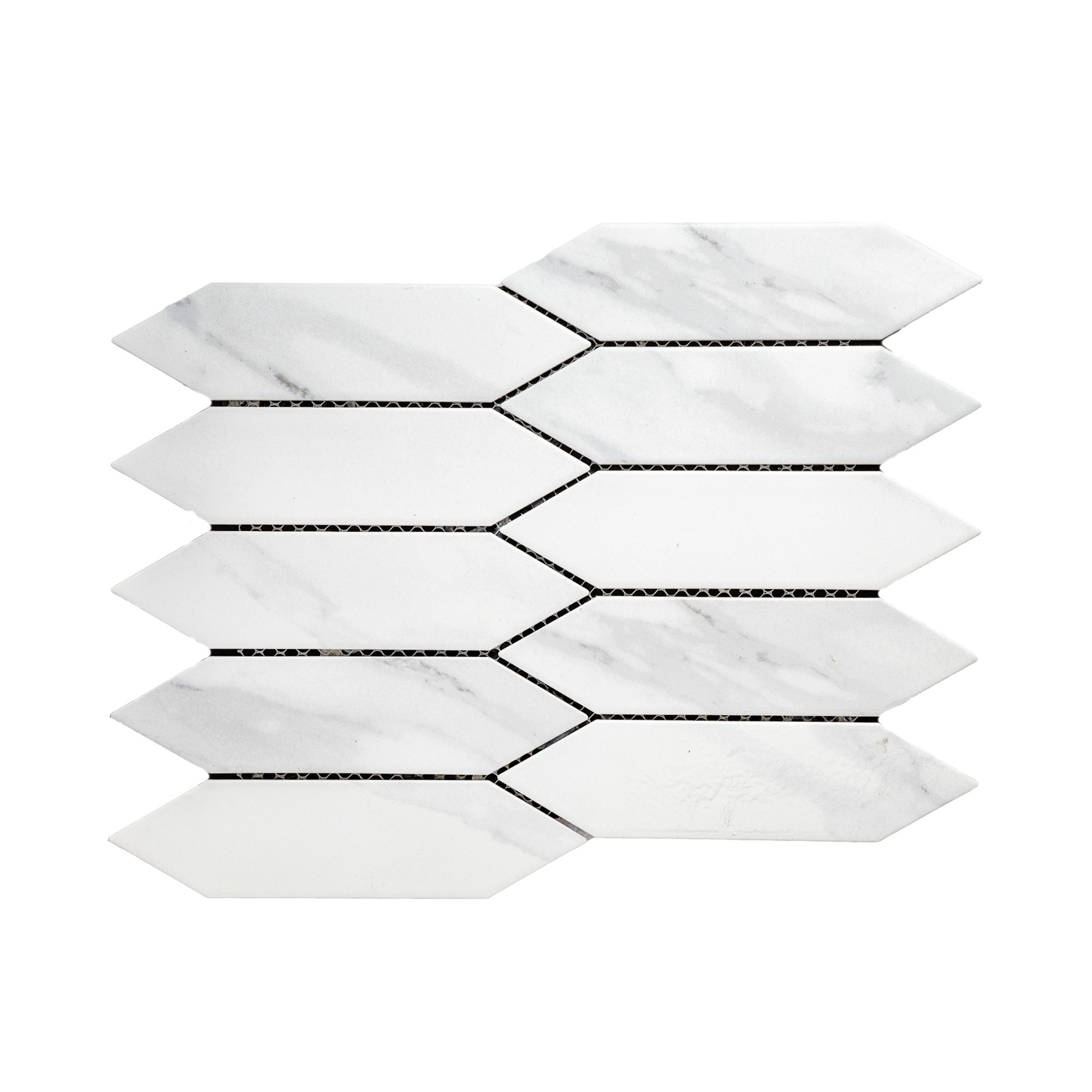 Мозаика Diamond Carrara – это современная мозаика, которая имеет необычную форму в виде вытянутого шестиугольника. Такой отделочный материал позволяет выполнить оригинальный современный ремонт и реализовать самые смелые дизайнерские решения. Мозаика будет интересно смотреться в ванной, в коридоре, на кухне и в других помещениях дома.