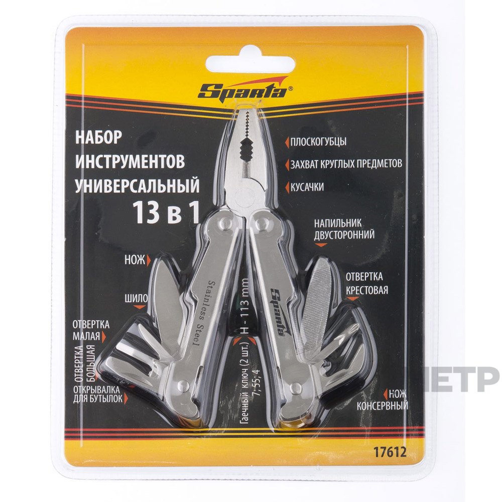 Мультитул универсальный 13 предметов фирмы Sparta может пригодиться, как в быту, так и в туристических походах. Когда полноразмерный инструмент трудно перемещать, но может возникнуть потребность в некоторых технических приспособлениях, выручит универсальный компактный набор, занимающий мало места.