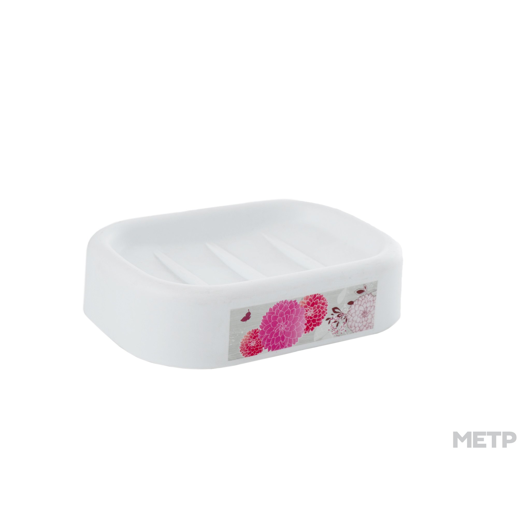 Мыльница NNK Гортензия дополнит любой интерьер ванной комнаты. Имеет универсальный размер. Стойкий к перепадам температуры пластик не меняет своей формы, а цвет сохраняется длительное время. Мыльница не скользит даже по самым гладким поверхностям, и очень легко очищается от остатков мыла.