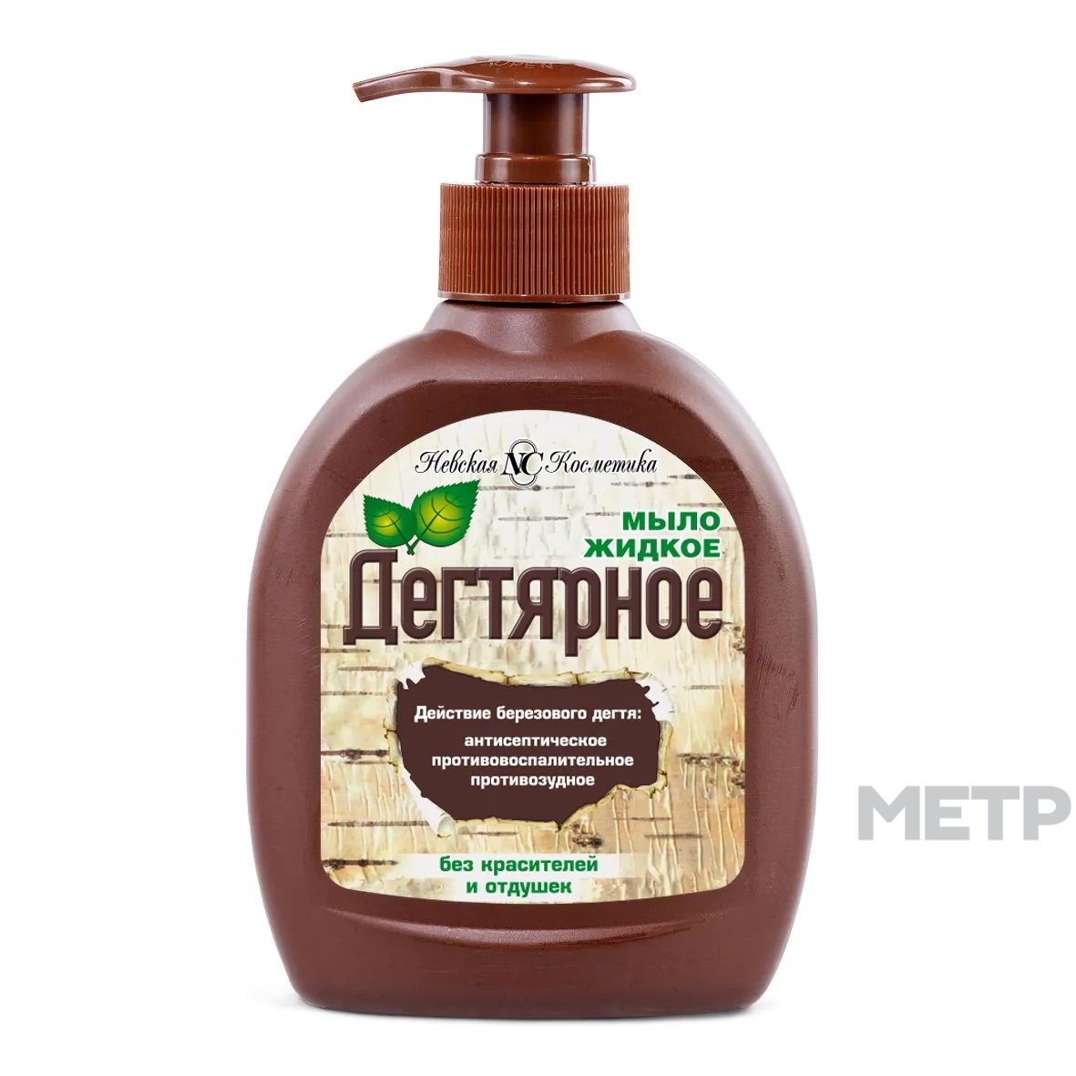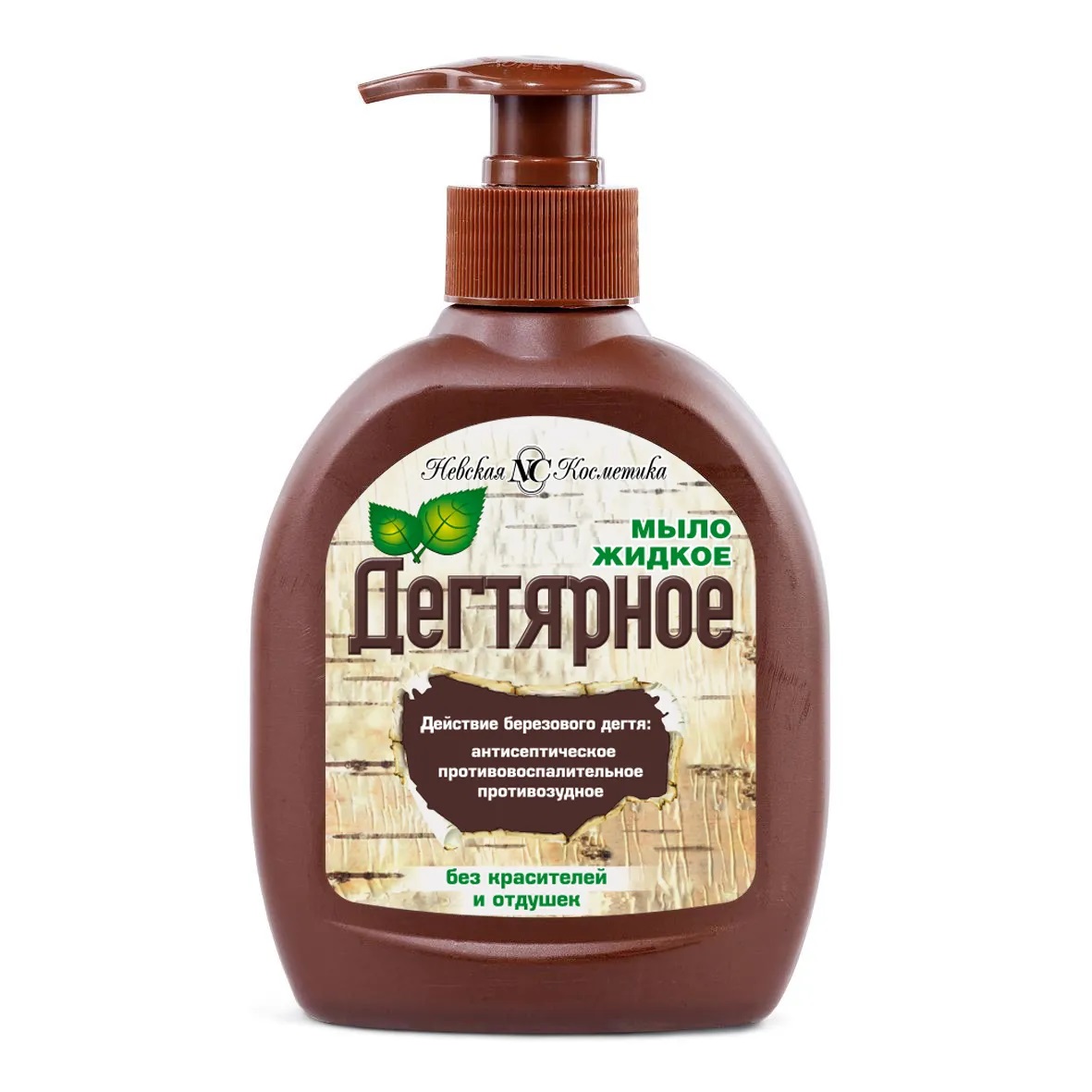 Мыло жидкое Невская косметика Дегтярное 300 мл не имеет каких-либо резких и неприятных запахов. Это универсальное средство, которое прекрасно борется с различными загрязнениями. Удобный объём, лёгкий травянистый аромат, хороший дозатор и натуральный состав – вот его главные преимущества!