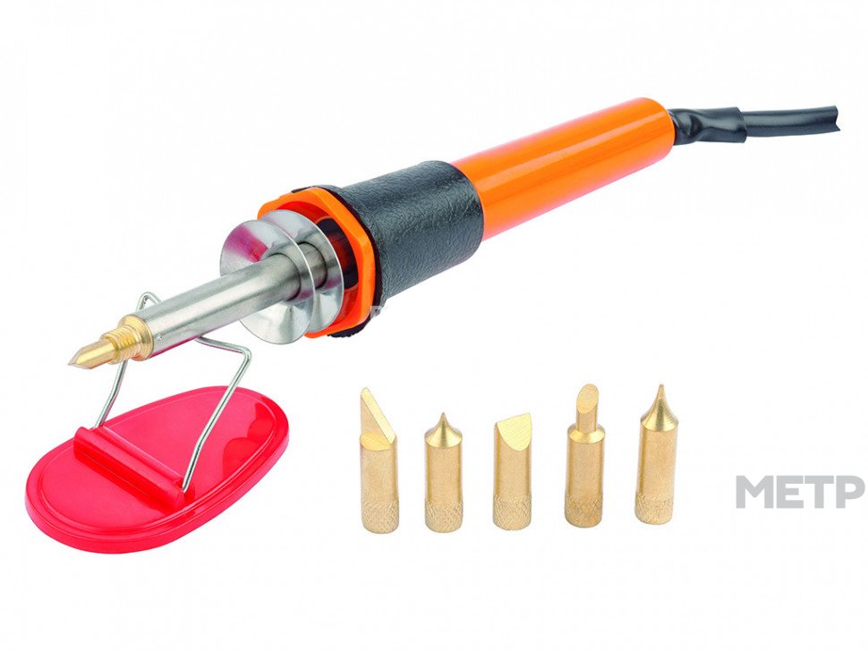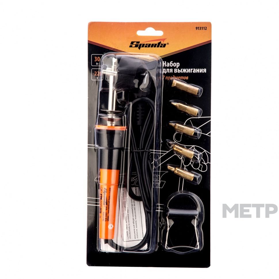 Набор для выжигания Sparta 913112 7 предметов, в составе: паяльник на 30 Вт, подставка и сменные жала. В данный комплект входит хороший запас сменных жал, подогнанных под основной прибор – качественный и надежный паяльник.