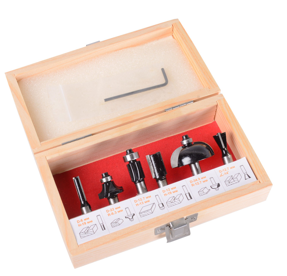 Набор фрез по дереву 6 предметов для работы с фрезерными станками и ручными фрезерами. Режущие кромки затачиваются на современных 5-ти координатных станках с ЧПУ, что обеспечивает точную геометрию.