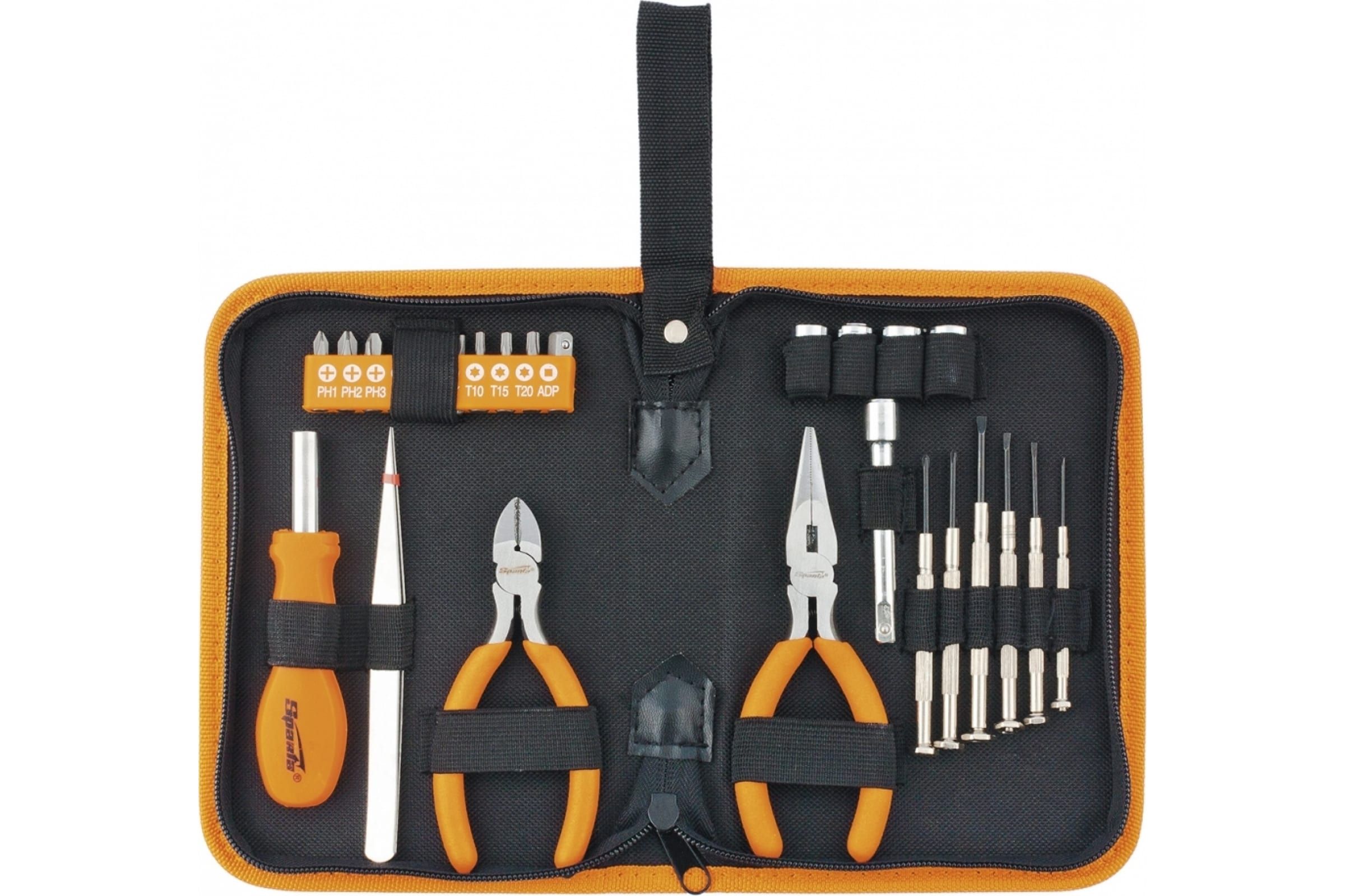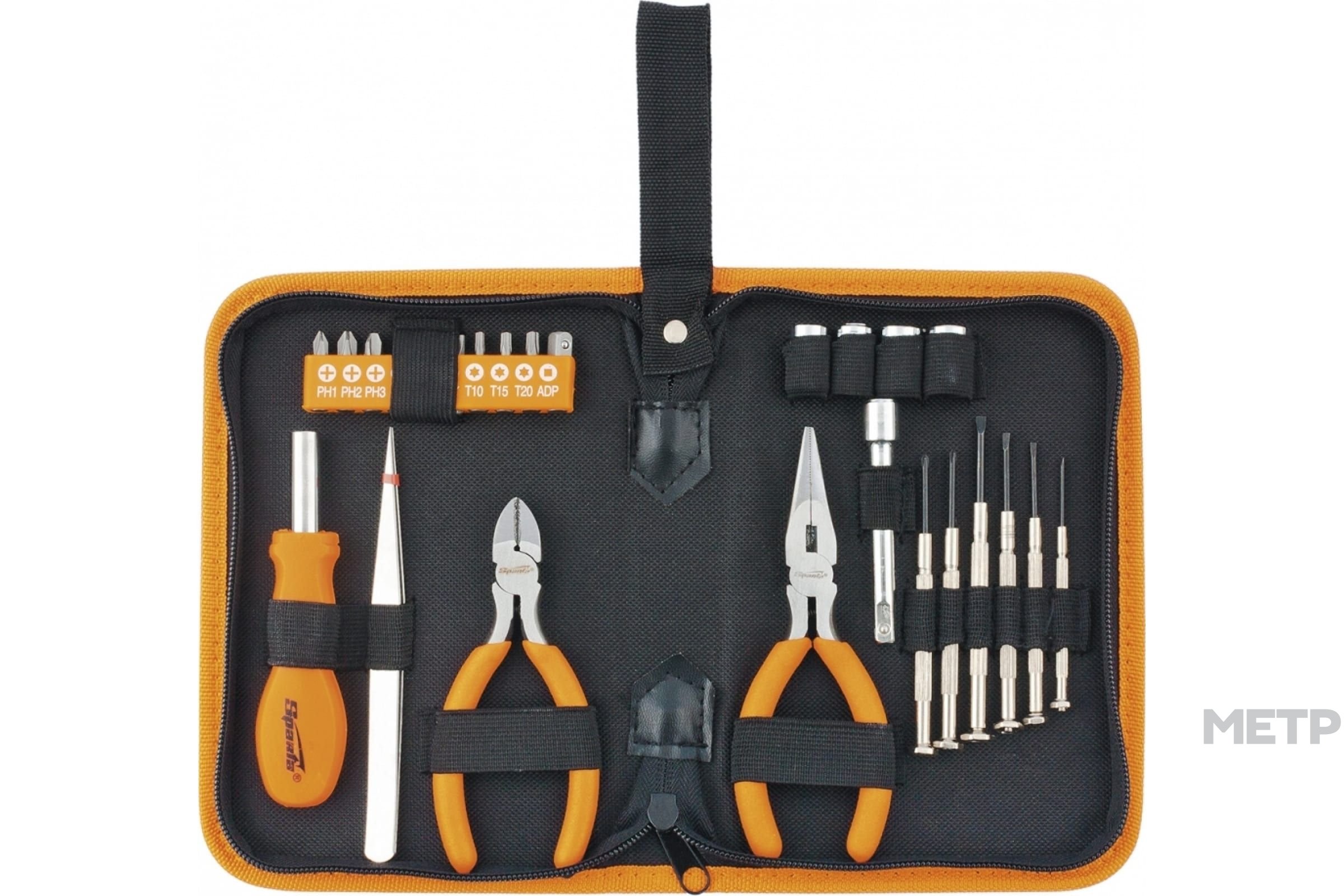 Набор инструмента 25пред слесарно-монтажный является многофункциональным комплектом для проведения различных столярных работ, включая ремонт и обслуживание резьбовых соединений. Все рабочие элементы набора изготовлены из высококачественной стали. Рукоятки инструментов выполнены из пластика, который обеспечивает надежное удержание. Комплект поставляется в пенале на молнии.