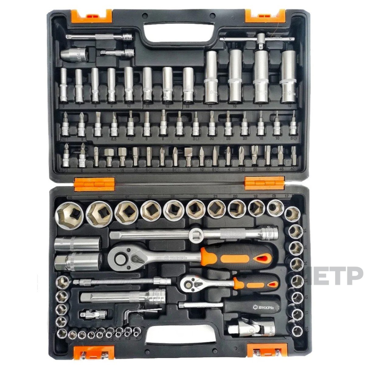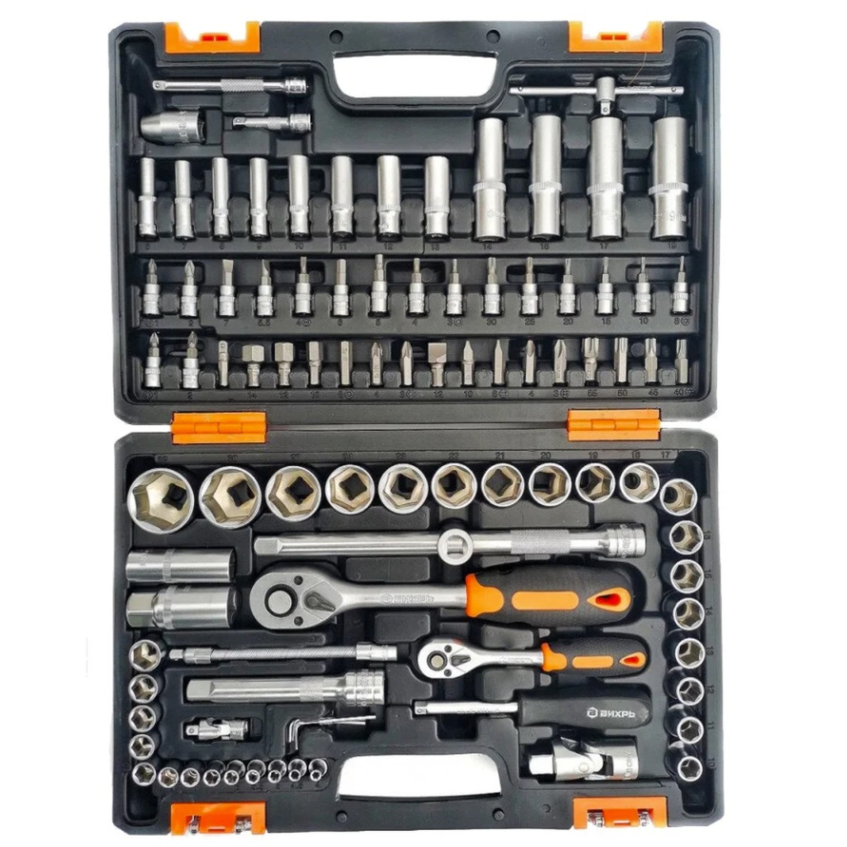 Набор инструментов Вихрь в кейсе 94 предмета, используется для ремонта автомобилей, мотоциклов, садовой и другой техники.Набор инструментов Вихрь может применяться как дома, так и на даче.Для изготовления головок и комбинированных ключей используется хромованадиевая сталь, которая придает инструменту хорошую твердость и легкость.Набор поставляется в кейсе, который изготовлен из жесткого противоударного пластика, с металлическими застёжками.