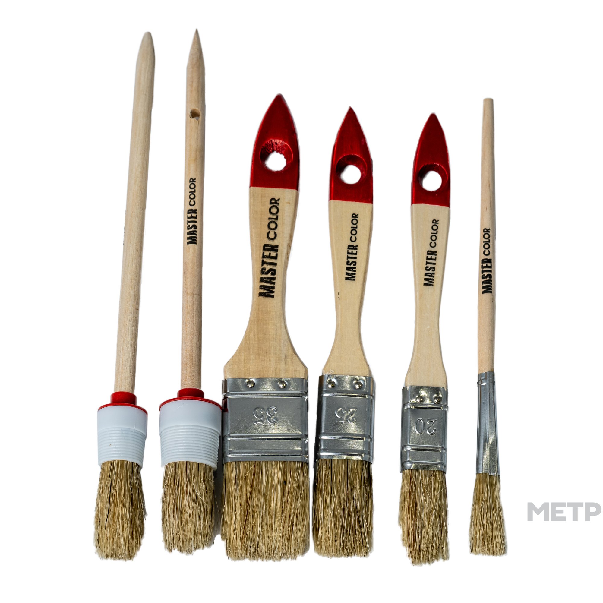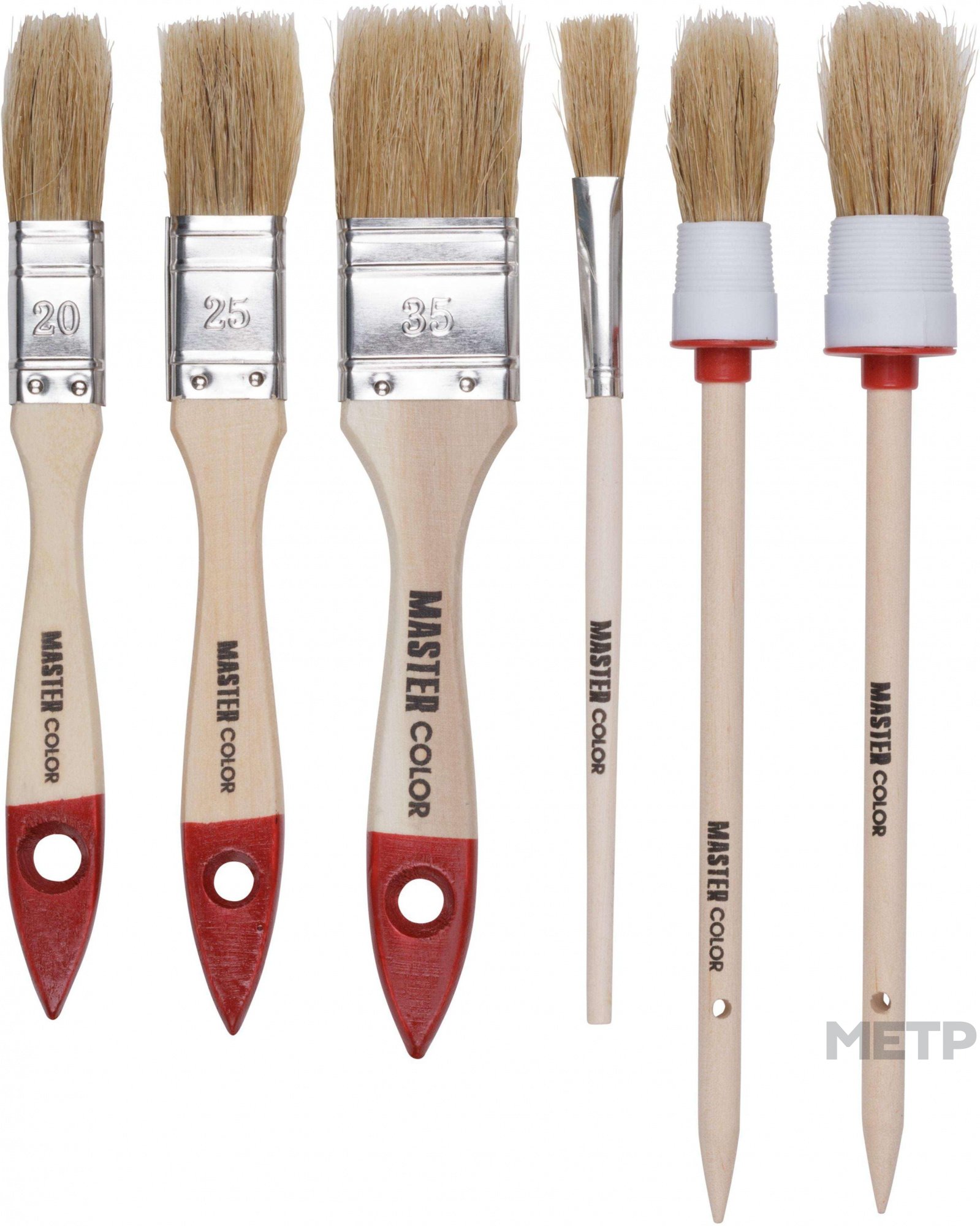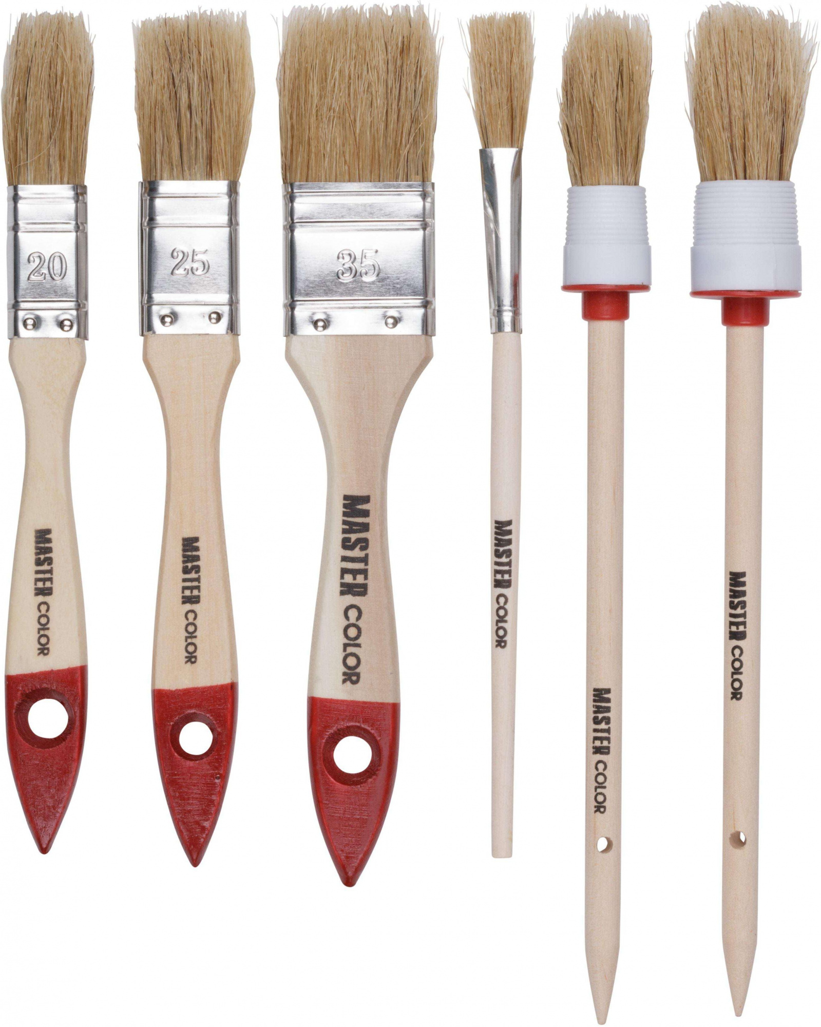 Набор кистей 6 шт. Master Color – это большой набор с очень качественными изделиями. Для создания кистей специалисты использовали натуральную щетину и дерево. Благодаря таким материалам они смогут прослужить вам очень долго. У кисточек довольно удобный или компактный размер. Легко держать в руке.