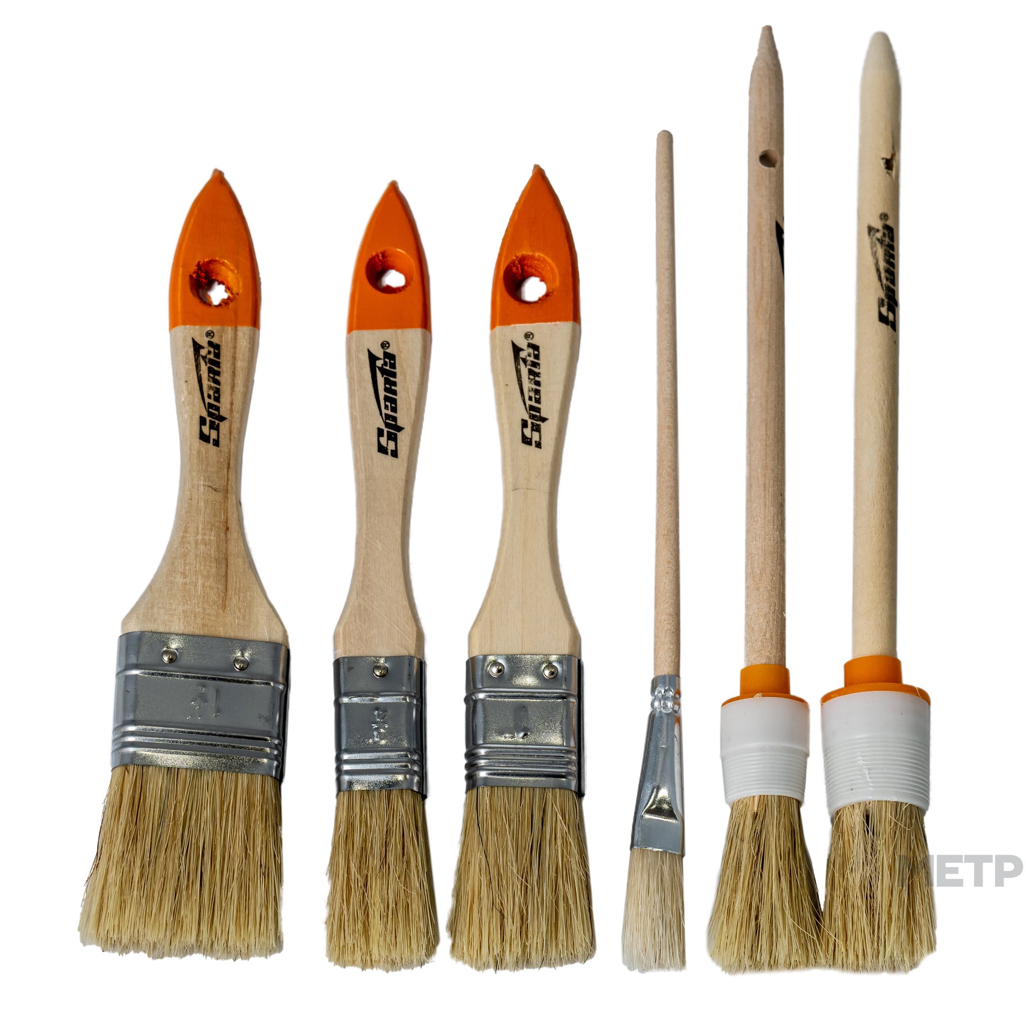 Набор кистей 6 шт. Sparta предназначены для работы с разными материалами. С помощью них вы сможете создать настоящее произведение искусства. У них довольно удобный размер, которые позволяет рисовать разные линии. Кисти изготовлены из качественных материалов: натуральная щетина и дерево.