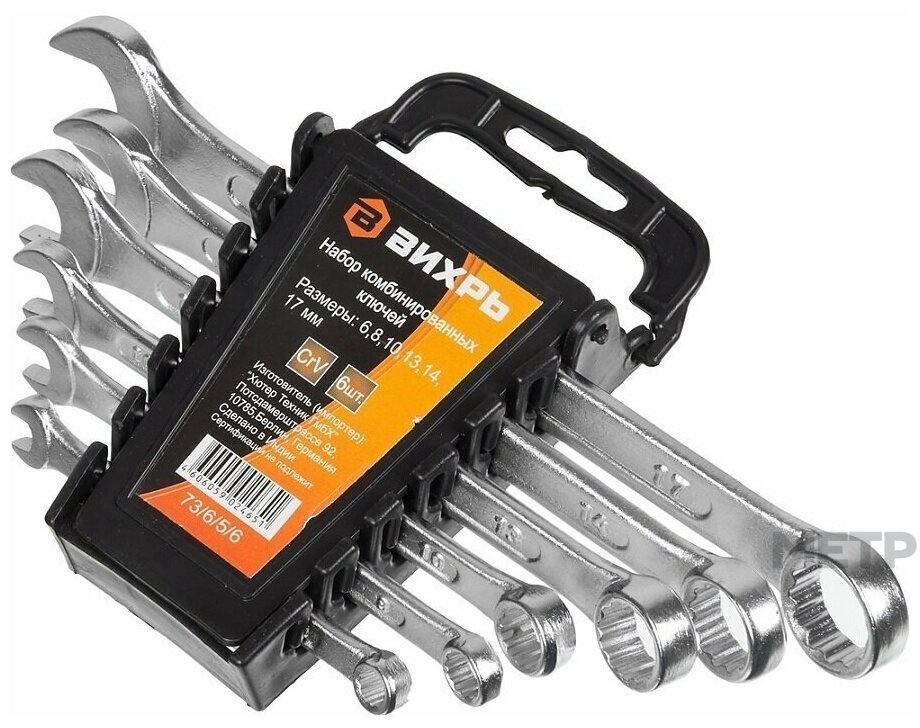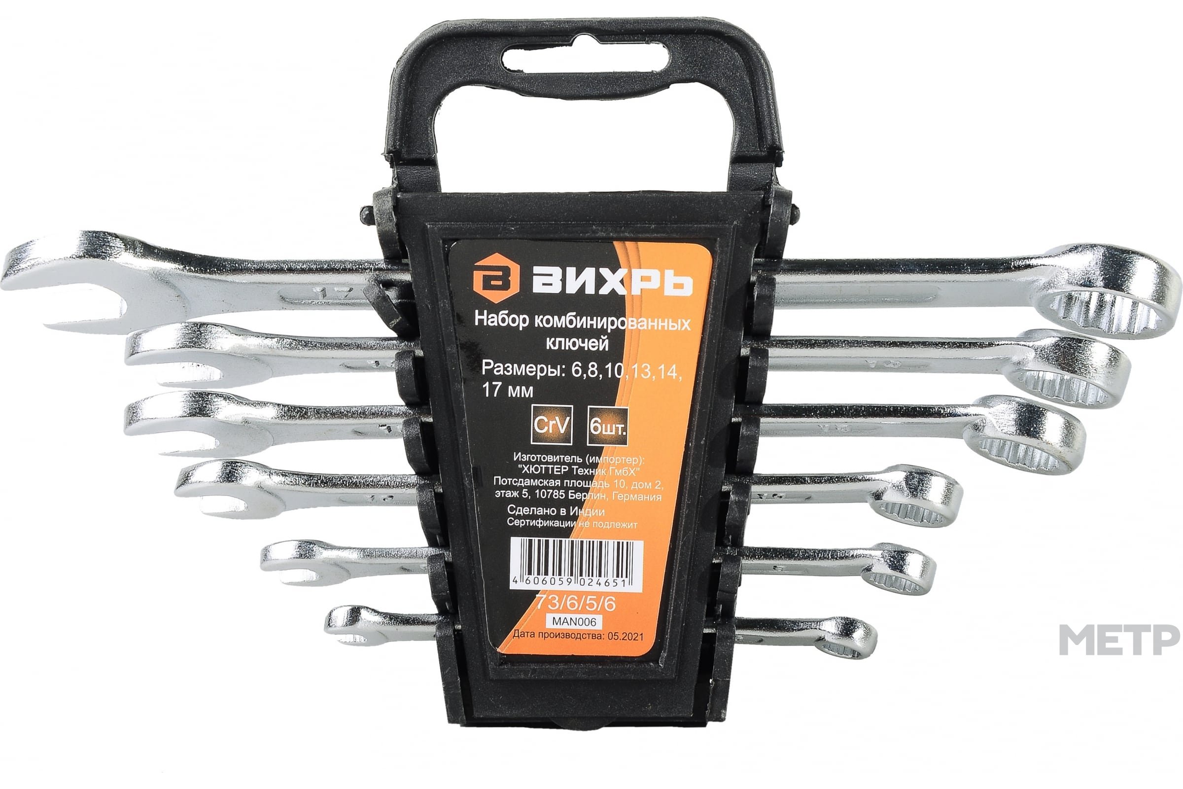 Набор ключей 6x17 мм Вихрь 6 шт. — с помощью этого комплекта с самыми ходовыми размерами вы сможете работать с любыми металлоконструкциями и крепежами в гараже или в домашних условиях. Материал изготовления изделий — хромованадиевая сталь с хромированным покрытием. Держатель из пластика подходит для хранения в подвешенном состоянии.