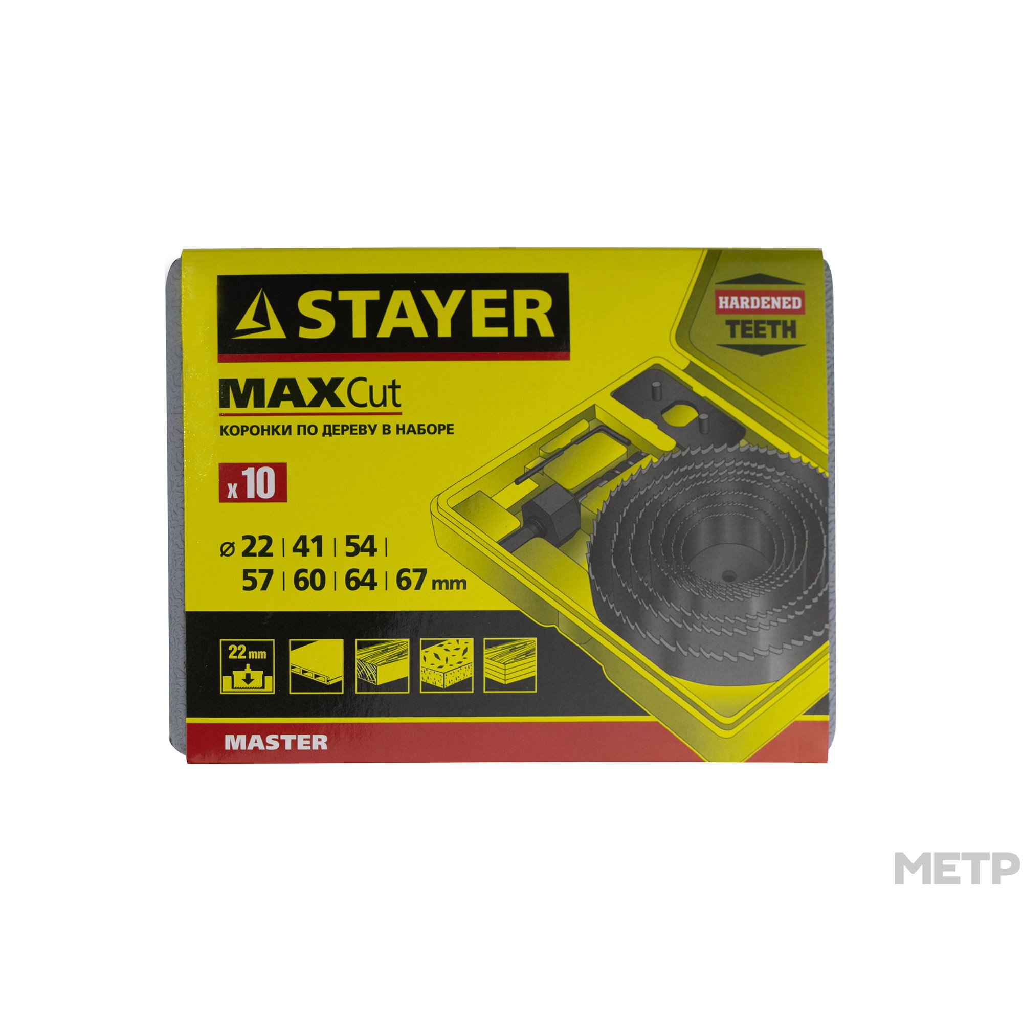 Набор коронок кольцевых 22-67мм в сборе 7 предметов по дереву для вырезания каналов в дереве любой твердости и в древесных плитах.