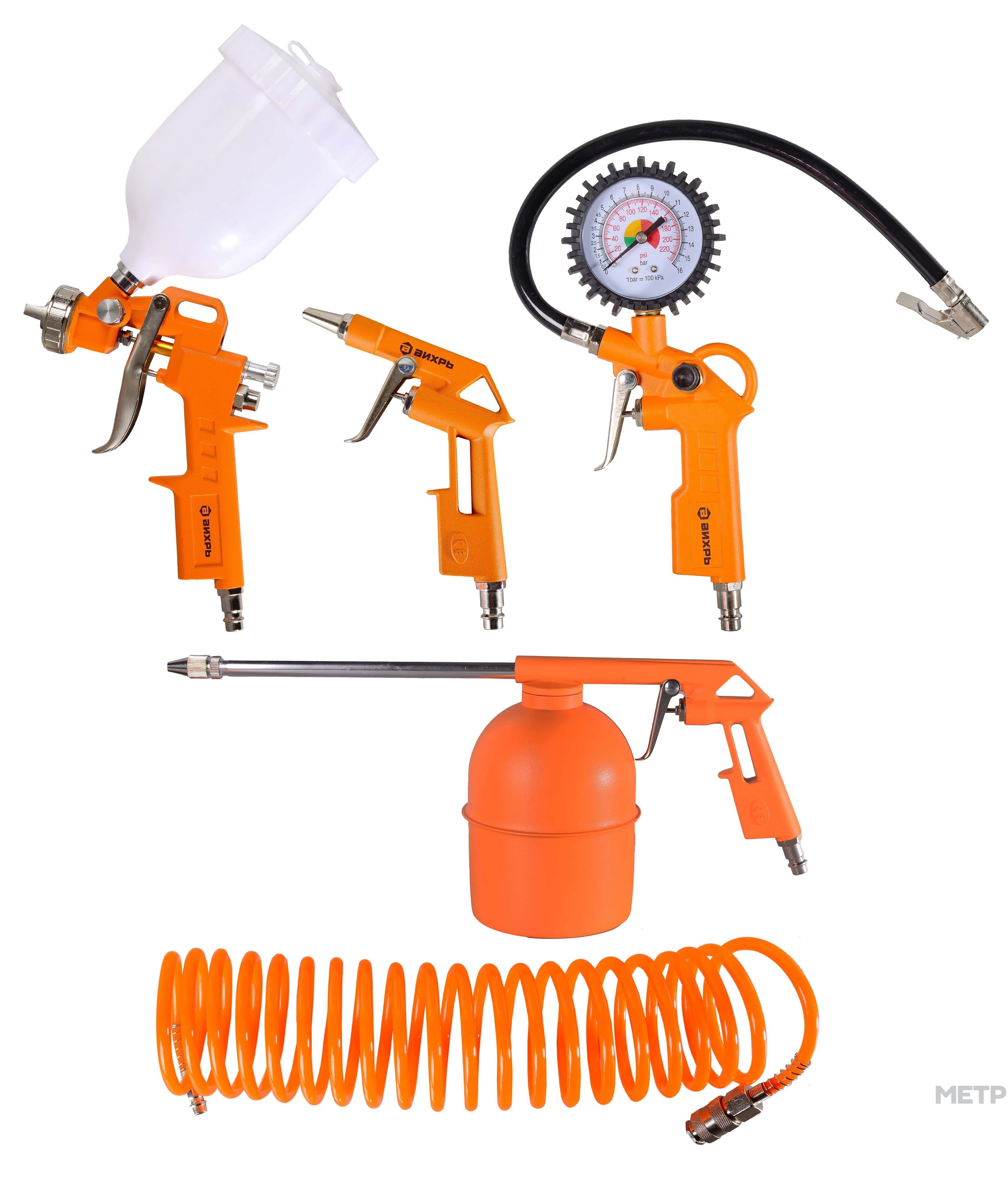 Набор пневмоинструмента это оборудование, которое работает от компрессора с помощью энергии сжатого воздуха. У пневмоинструмента производительность больше, чем у электрического оборудования. Отлично подходит ко всем компрессорам ВИХРЬ.