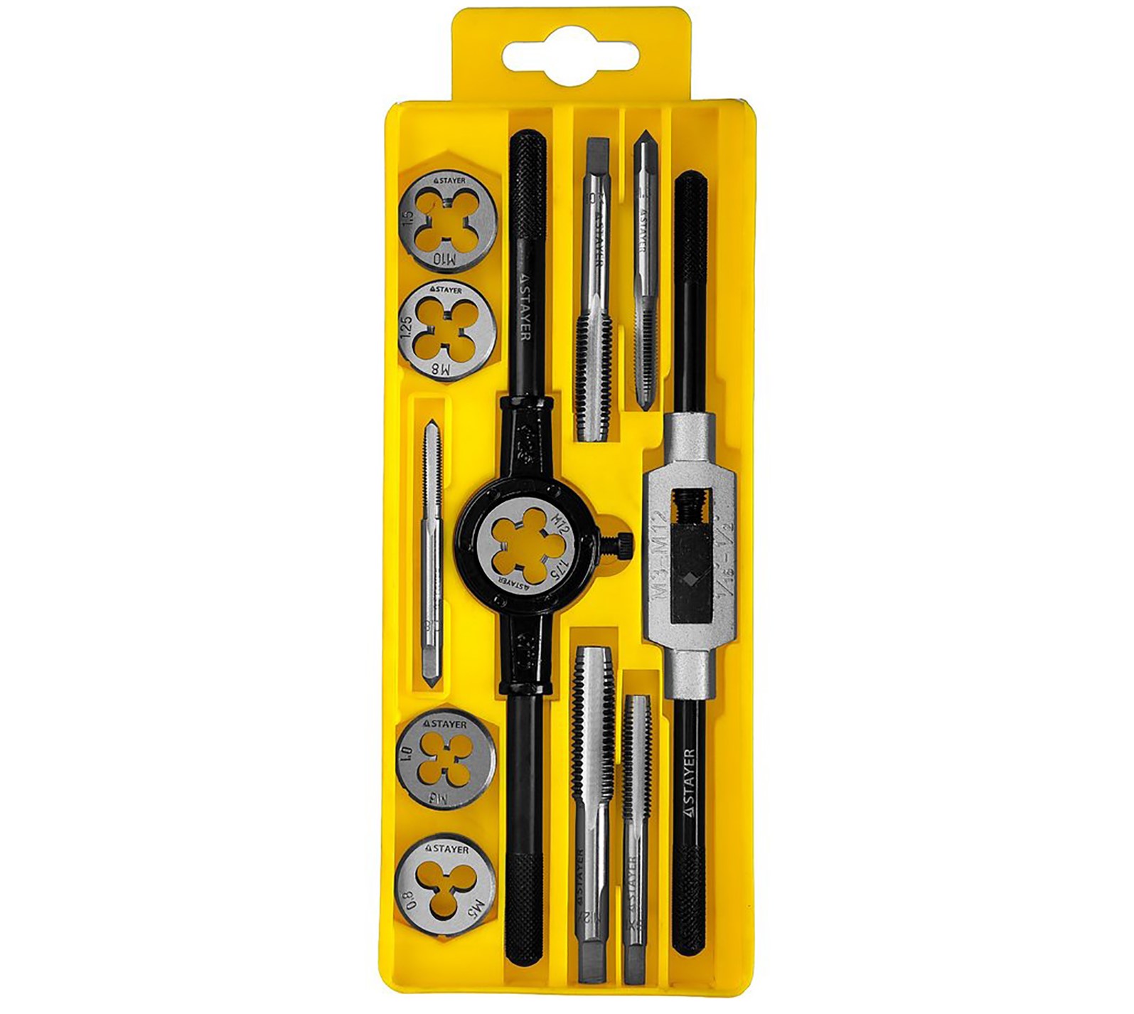 Набор резьбонарезной STAYER 12 предметов (метчики и плашки). С помощью данного комплекта можно полноценно подготовить к установке водопроводные и иные трубы, нарезав на них как внутреннюю, так и внешнюю резьбу. Изделия подойдут для самостоятельных работ с коммуникациями частного загородного дома.