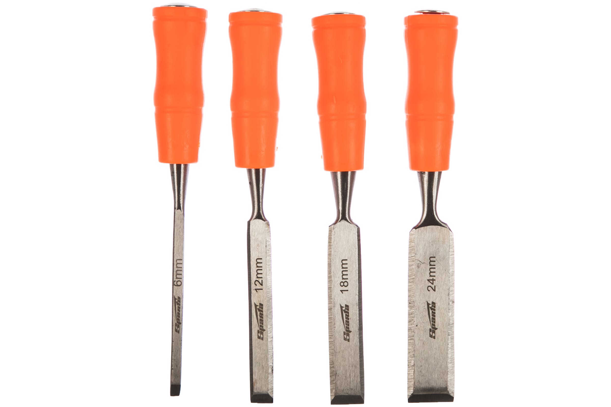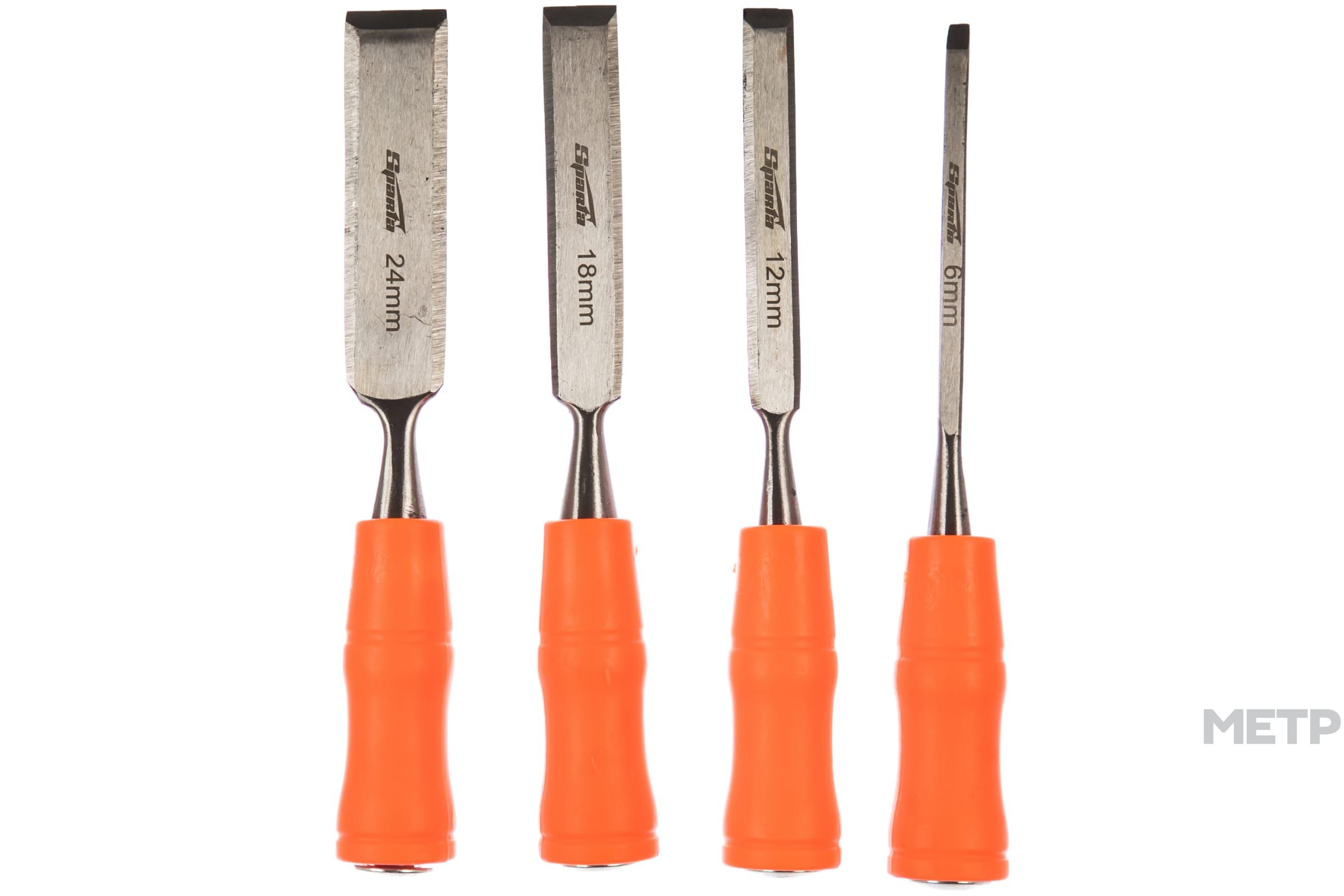 Набор стамесок Sparta 4 шт (параметры изделий по ширине: 6, 12, 18, и 24 мм соответственно), с плоскими пластиковыми ручками, материал рабочей части – сталь. Представленных в комплекте инструментов достаточно для выполнения всех основных плотницких работ по профилю. Изделия надежны и долговечны.