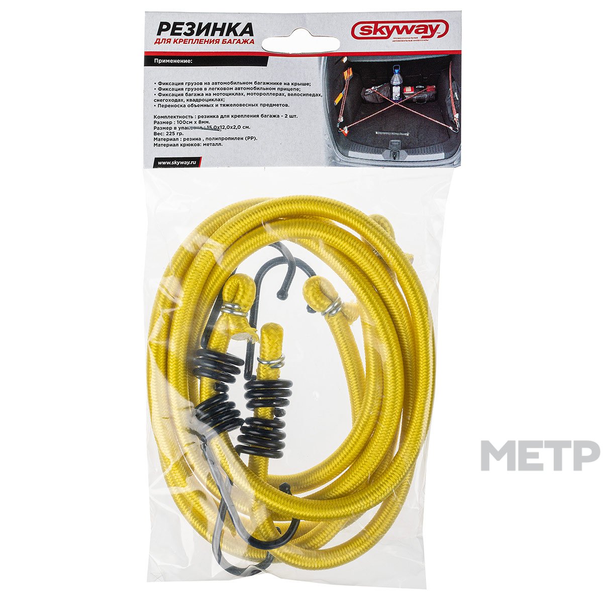 Набор стяжек для груза 8 мм1 м 2 шт. - резинки для крепления груза используются для фиксации грузов в автомобиле, мотоциклах или скутерах, тем самым сведя к минимуму перемещение груза во время движения. Для производства используется специальный эластичный материал с применением резиновой нити. В комплекте 2 резинки для крепления с металлическим крюком на конце, который обеспечивает надежную фиксацию и предотвращает потери багажа.