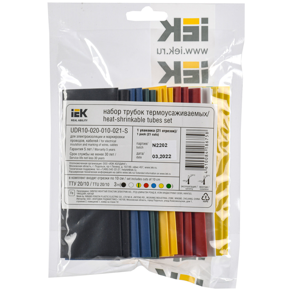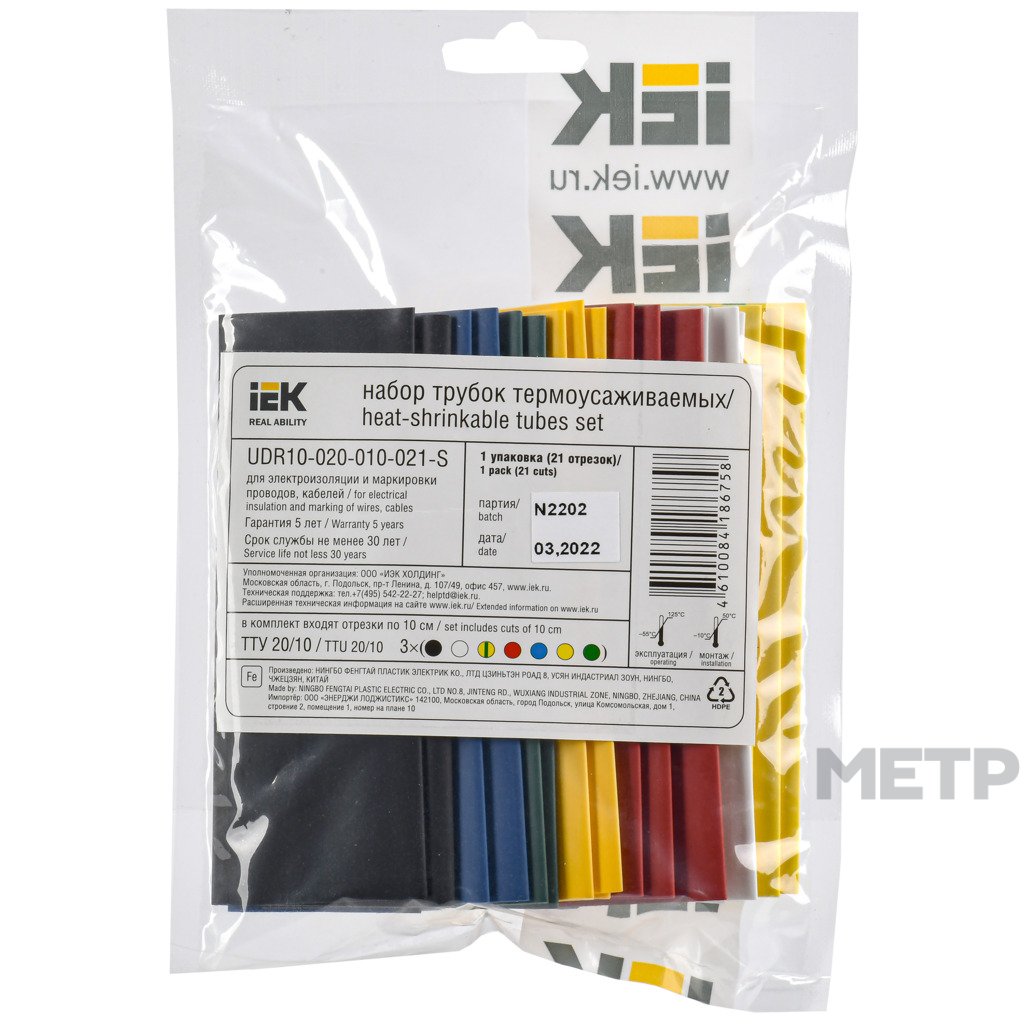 Набор термоусадочных трубок ТТУ нг-LS IEK 20/10мм 21шт. 0,1м мультиколор включает самые востребованные монтажные размеры, необходимые как для профессионального, так и для бытового использования. Термоусадочные трубки IEK изготовлены из модифицированного полиэтилена (не поддерживающего горение, с низким газо- и дымовыделением) и предназначены для электрической изоляции и маркировки проводов и кабеля. Наборы поставляются в полиэтиленовом пакете.