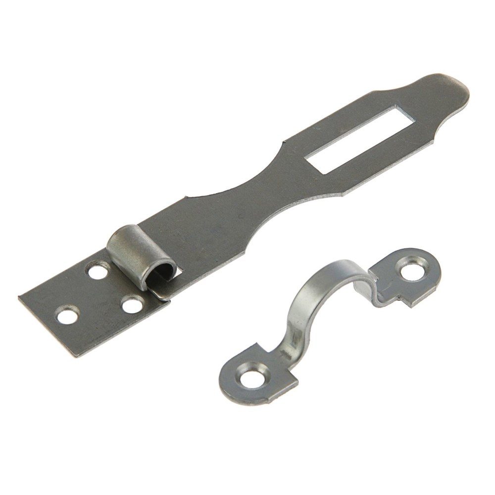 Накладка цинк 105х24 мм запирает двери вместе с навесным замком. Удобная и простая установка - достаточно отвертки, несколько саморезов и самой двери. На дверь прикрутите накладку и ответную планку. Далее закрываем накладку так, чтобы в отверстие накладки попало отверстие ответной планки. Пропускаем дужку навесного замка через отверстие ответной планки и закрываем замок. Изделие изготовлено из прочной стали и имеет оцинкованное покрытие для защиты от окружающей среды.