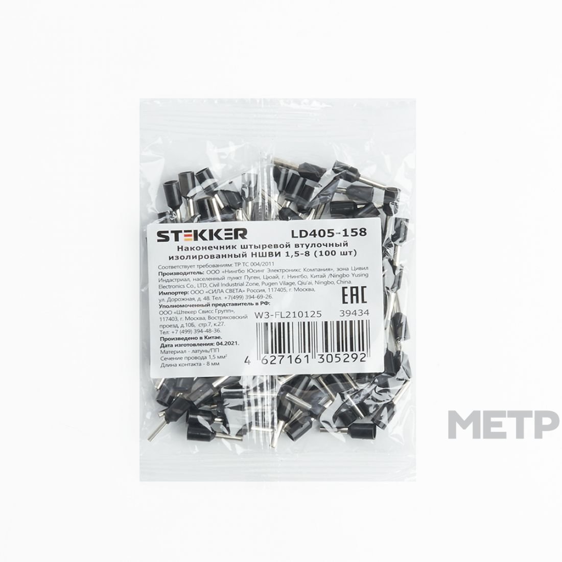 Наконечник штыревой втулочный изолированный НШВИ STEKKER 1,5мм2 предназначен для оконцевания многопроволочных гибких проводов и подключения их к контактным зажимам различного электрооборудования (клеммным блокам, автоматическим выключателям, зажимам наборным, розеткам и т.п.).