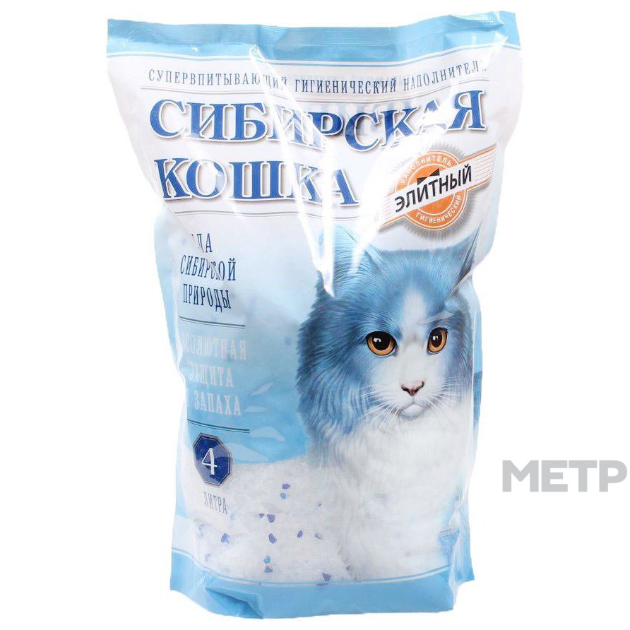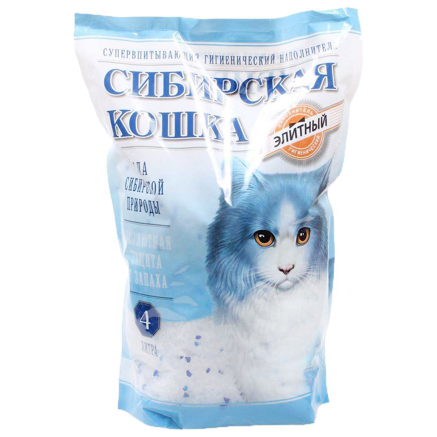 Наполнитель силикагелевый Сибирская кошка Элитный 4 л. это товар, представленный вниманию тех, кто заботится о дорогостоящих породистых пушистых питомцах. Наполнитель этой марки является качественным и безопасным, поэтому каждый кот или кошка будут счастливы, что в их лотке полный порядок.